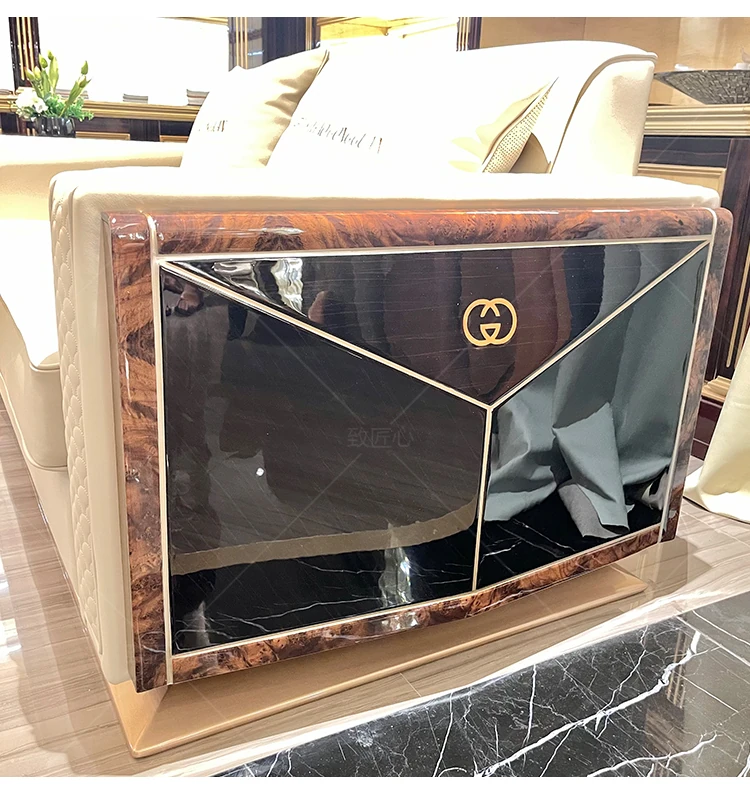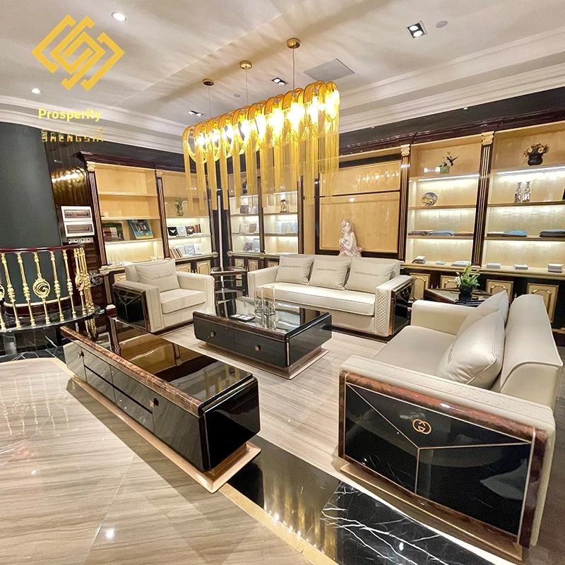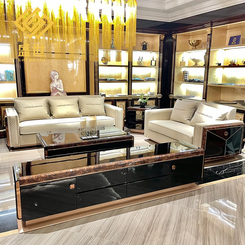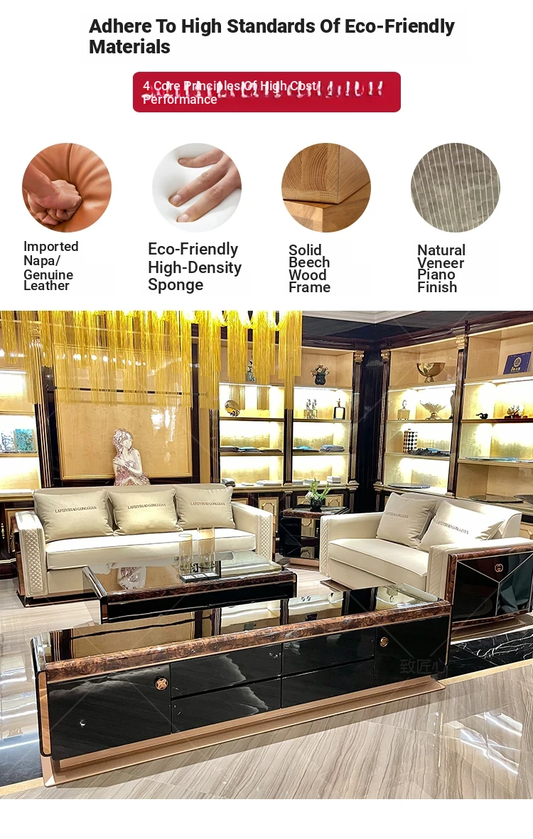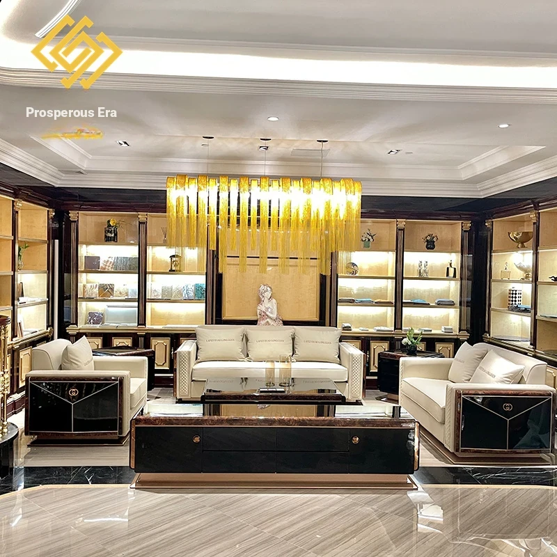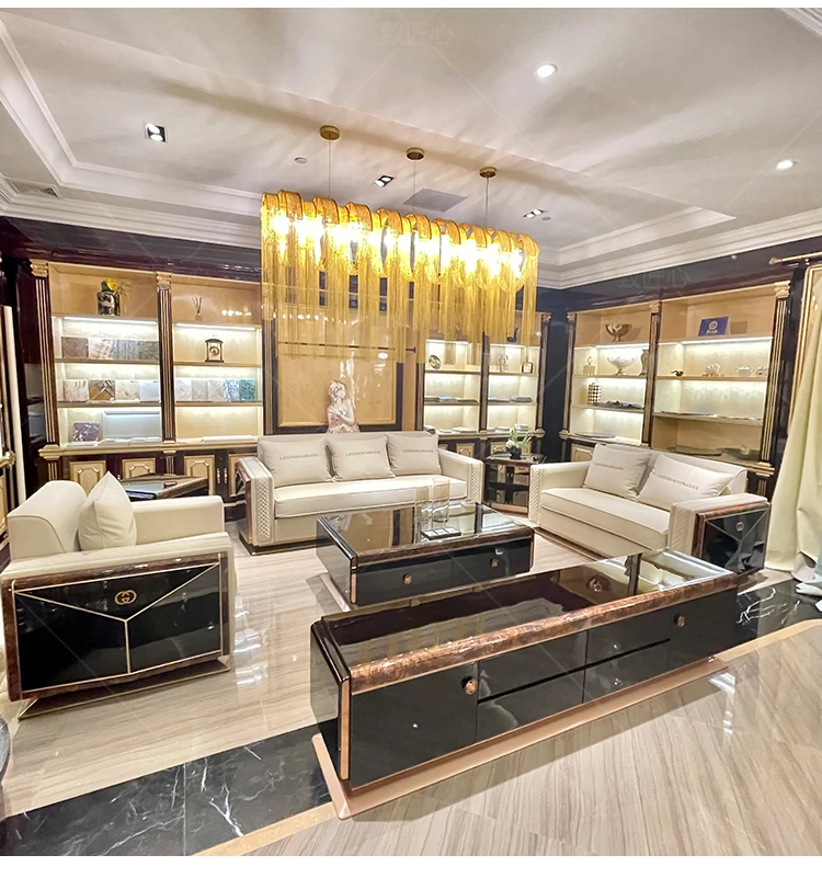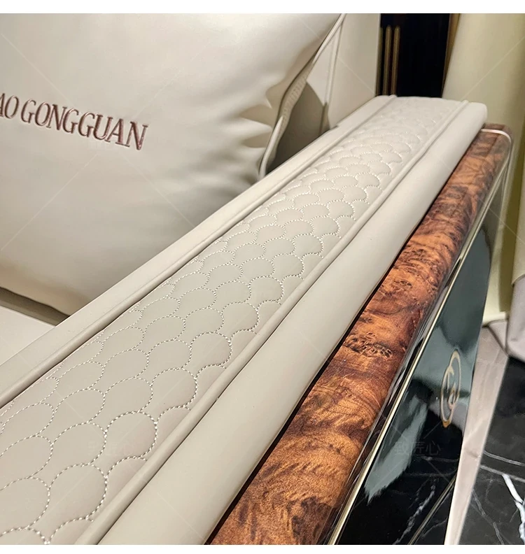 Italian Luxury Post-Modern Light Luxury Genuine Leather Sofa - 123 Combination for High-End Villa Living Room, Elegant Hong Kong Style Furniture.