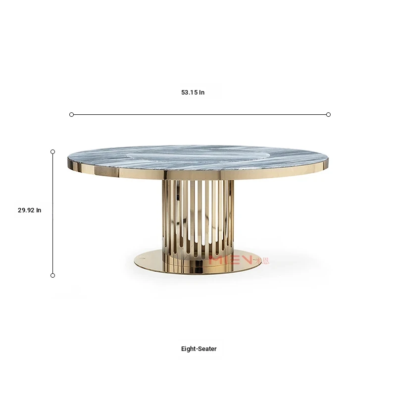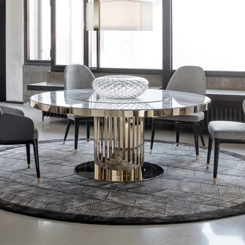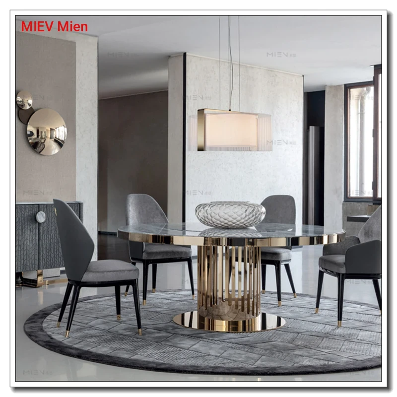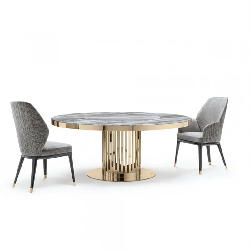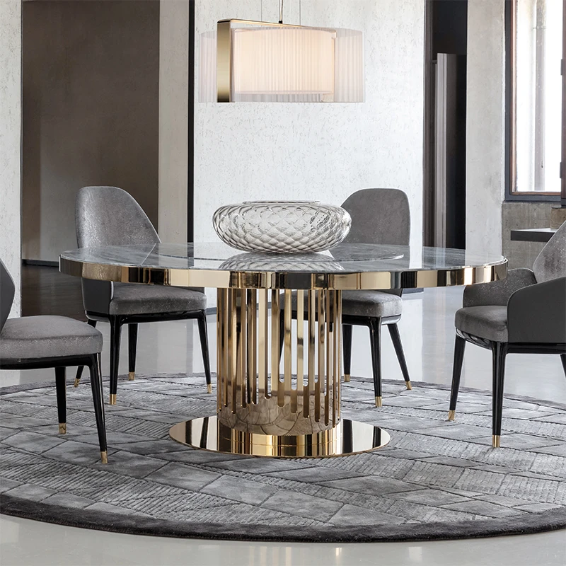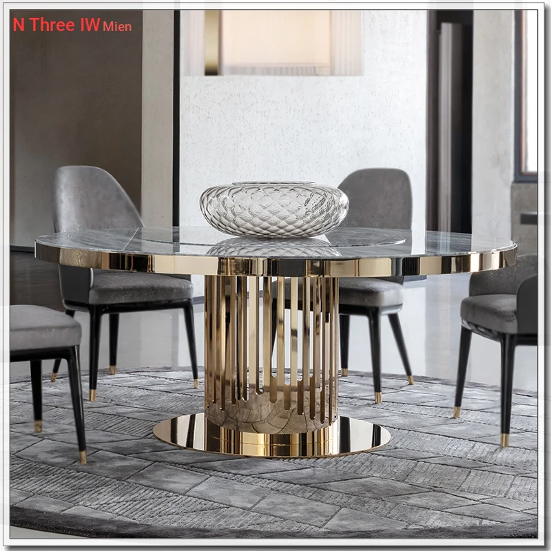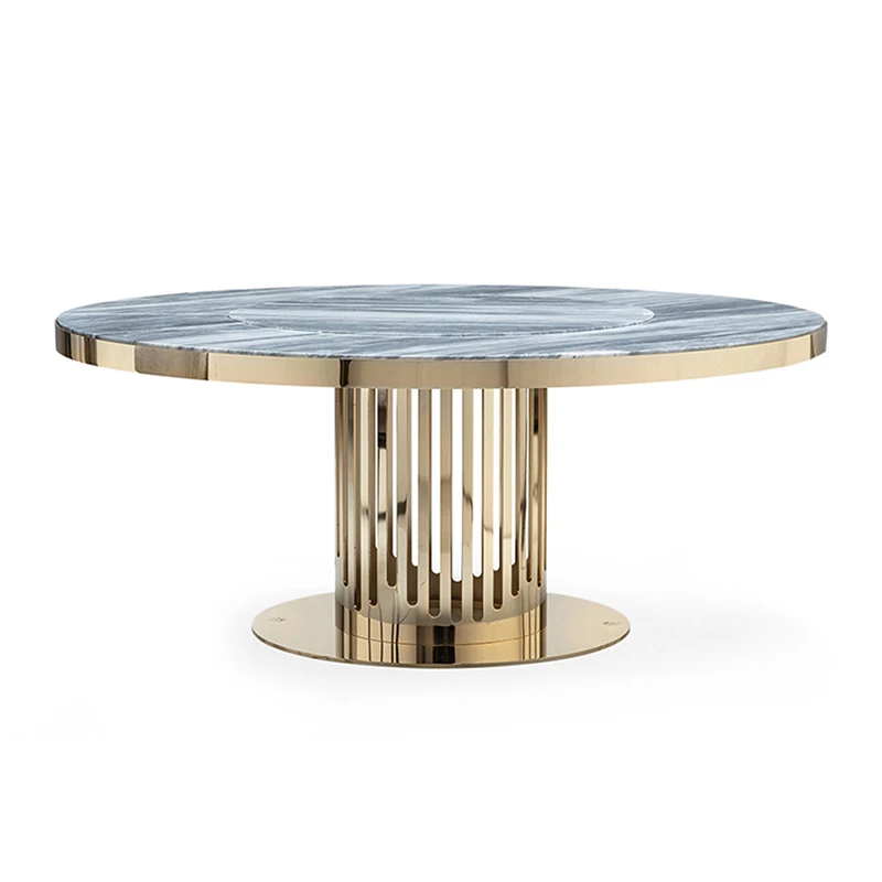 Italian Luxury Round Dining Table for High-End Villas - Stainless Steel Base with Blue Sandstone Marble Top, Perfect for Elegant Gatherings and Discussions