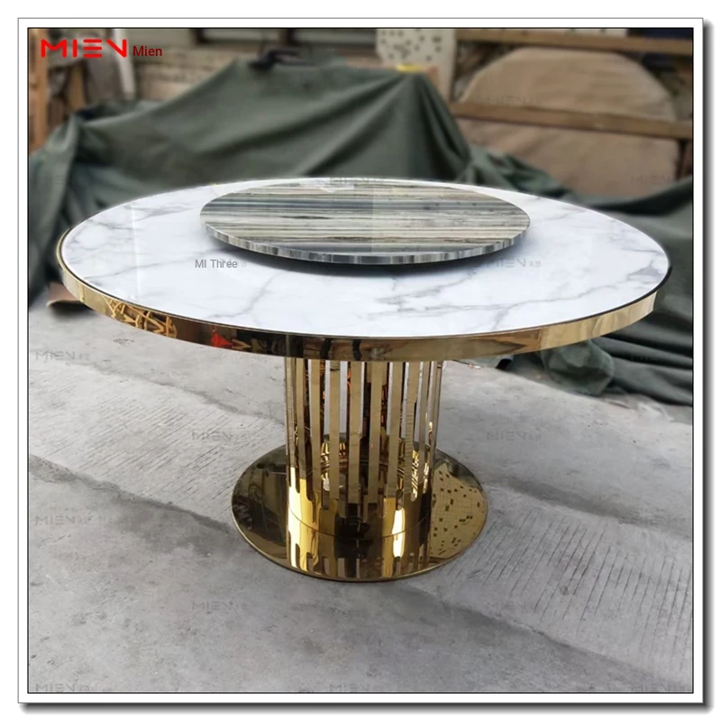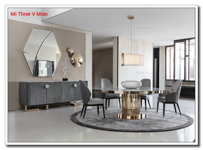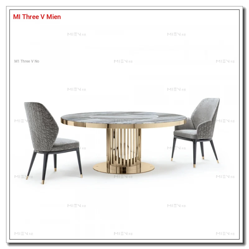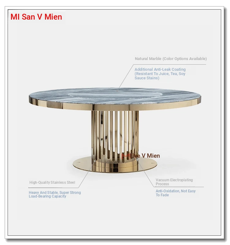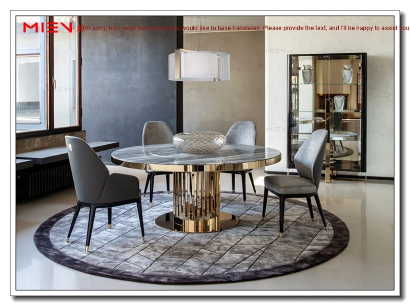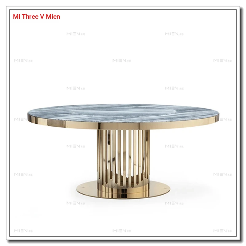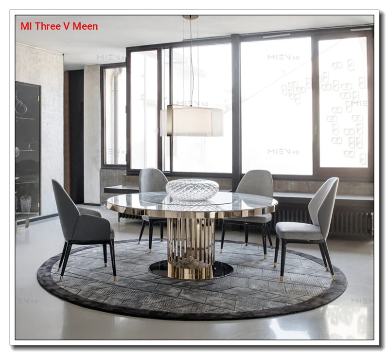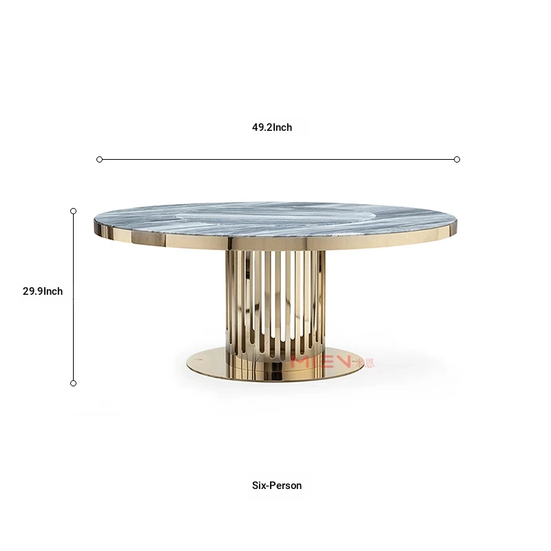 Italian Luxury Round Dining Table for High-End Villas - Stainless Steel Base with Blue Sandstone Marble Top, Perfect for Elegant Gatherings and Discussions