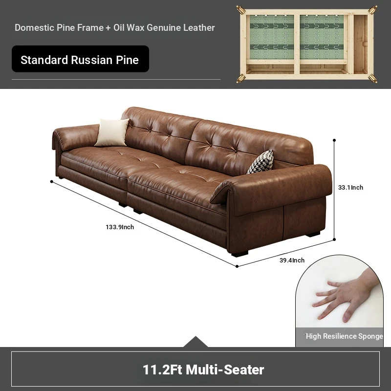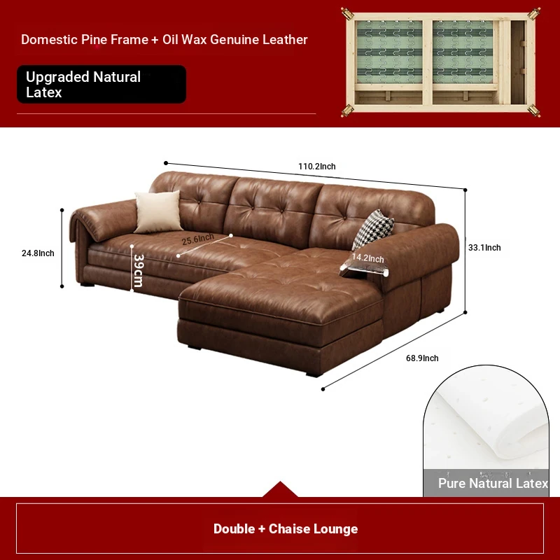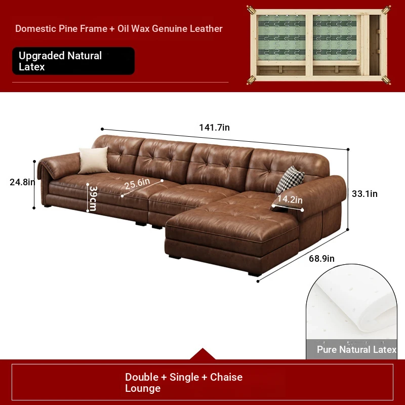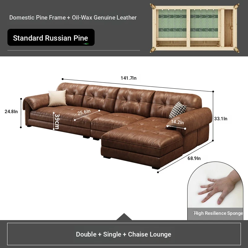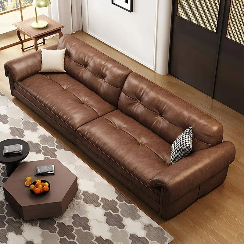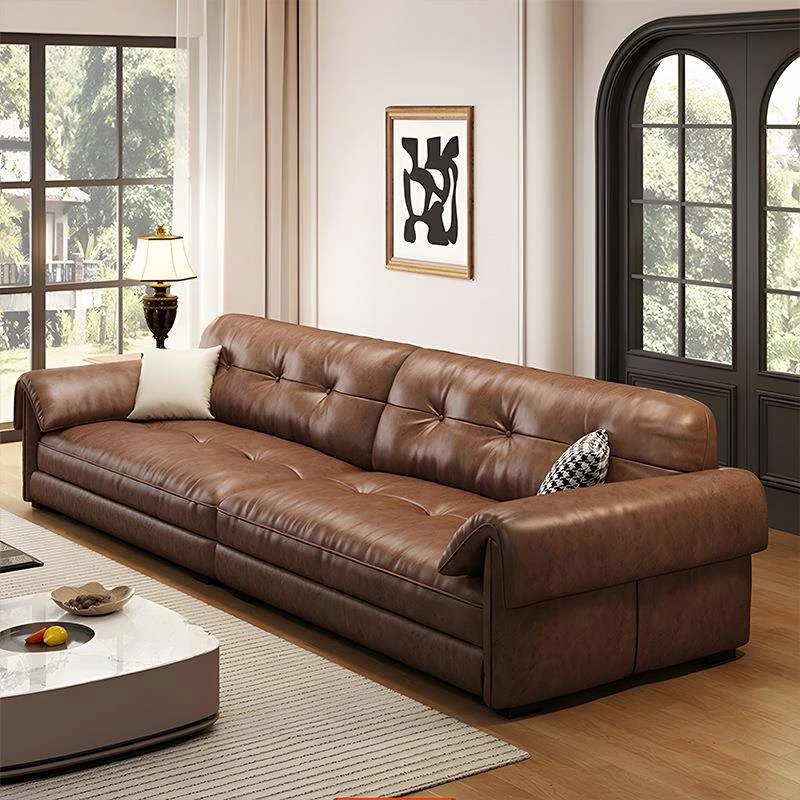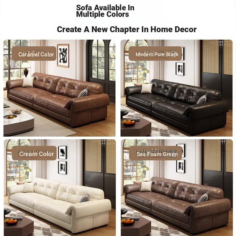 Italian Minimalist Genuine Leather Sofa - Three-Seater with Chaise Lounge, Retro Style for Living Room, Model XS636 - A Perfect Blend of Elegance and Comfort