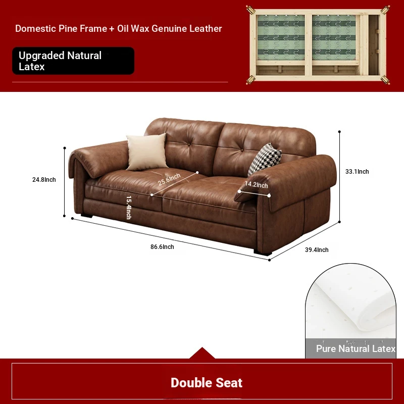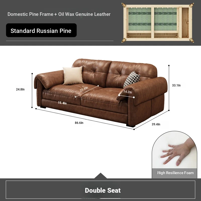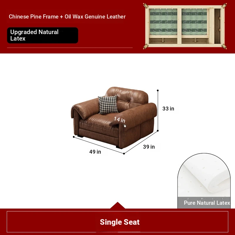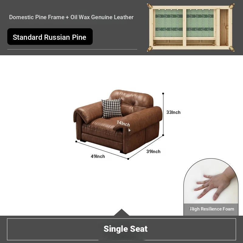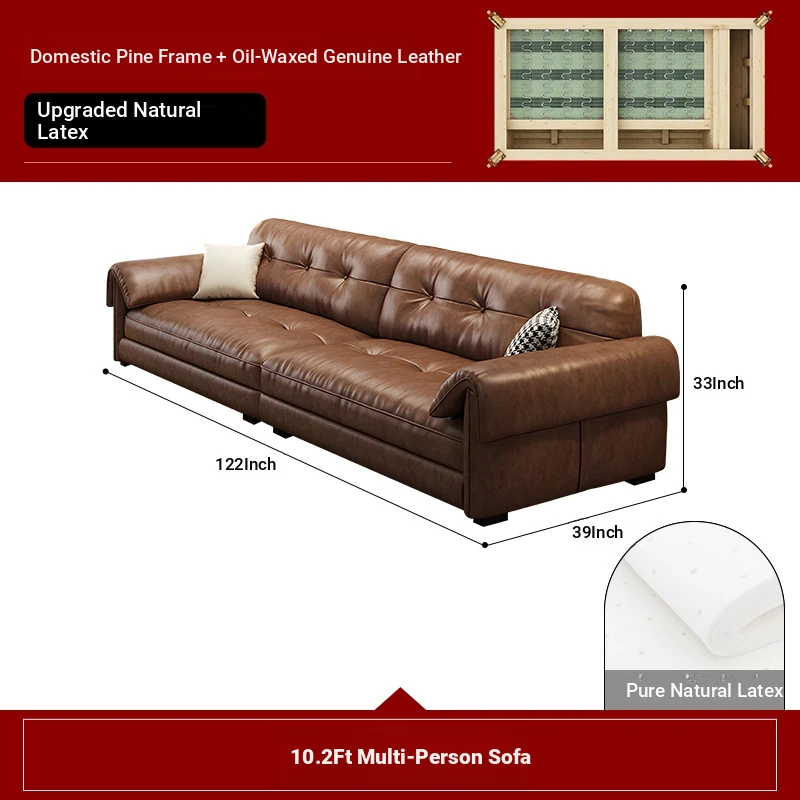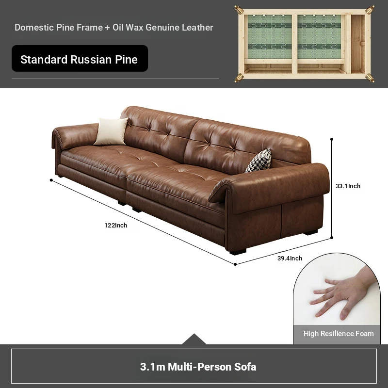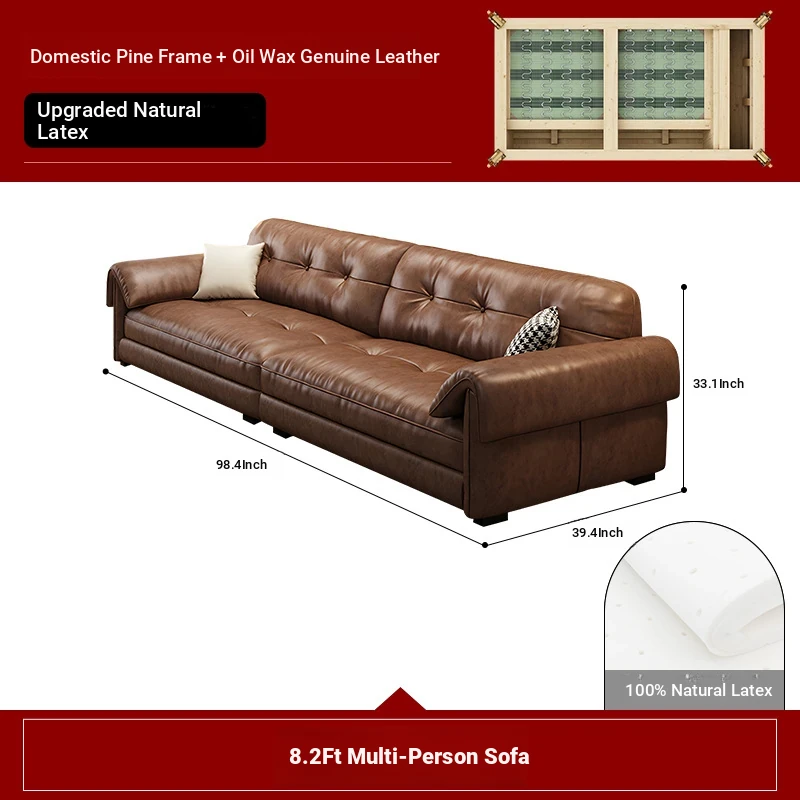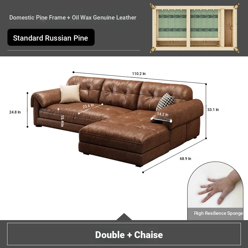 Italian Minimalist Genuine Leather Sofa - Three-Seater with Chaise Lounge, Retro Style for Living Room, Model XS636 - A Perfect Blend of Elegance and Comfort