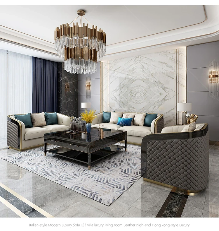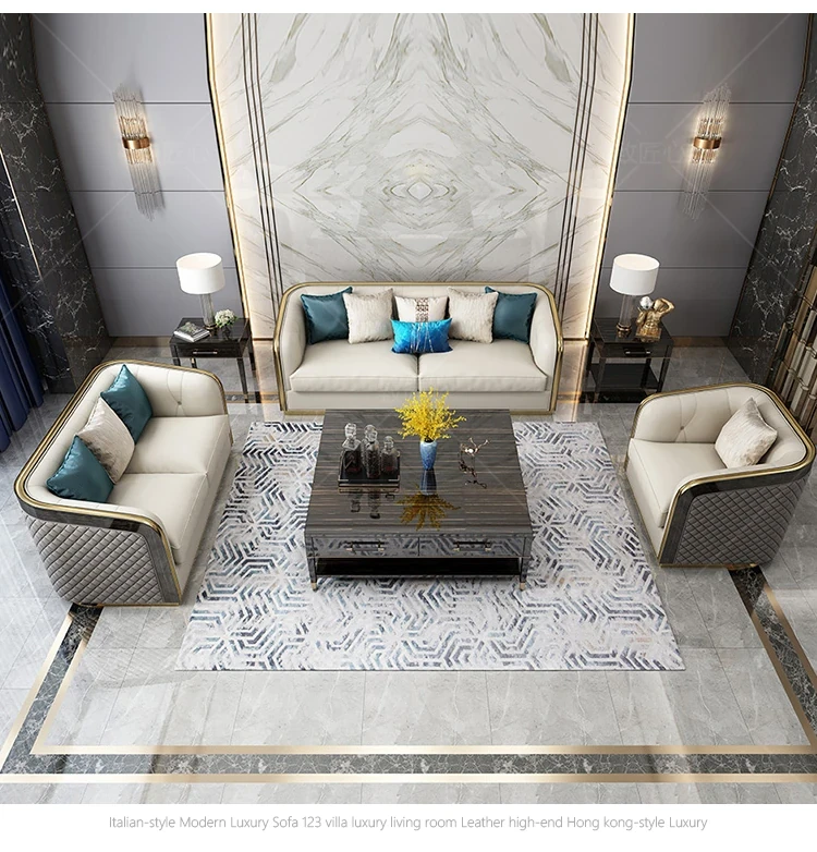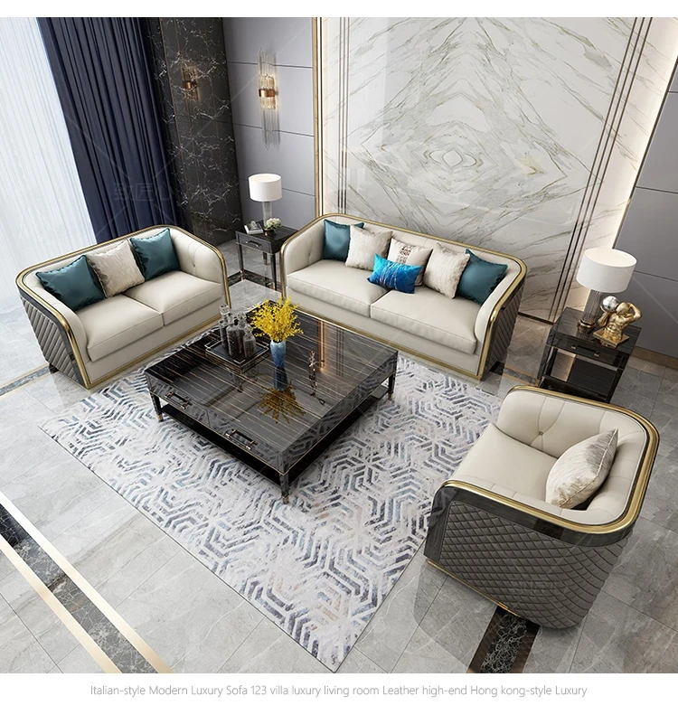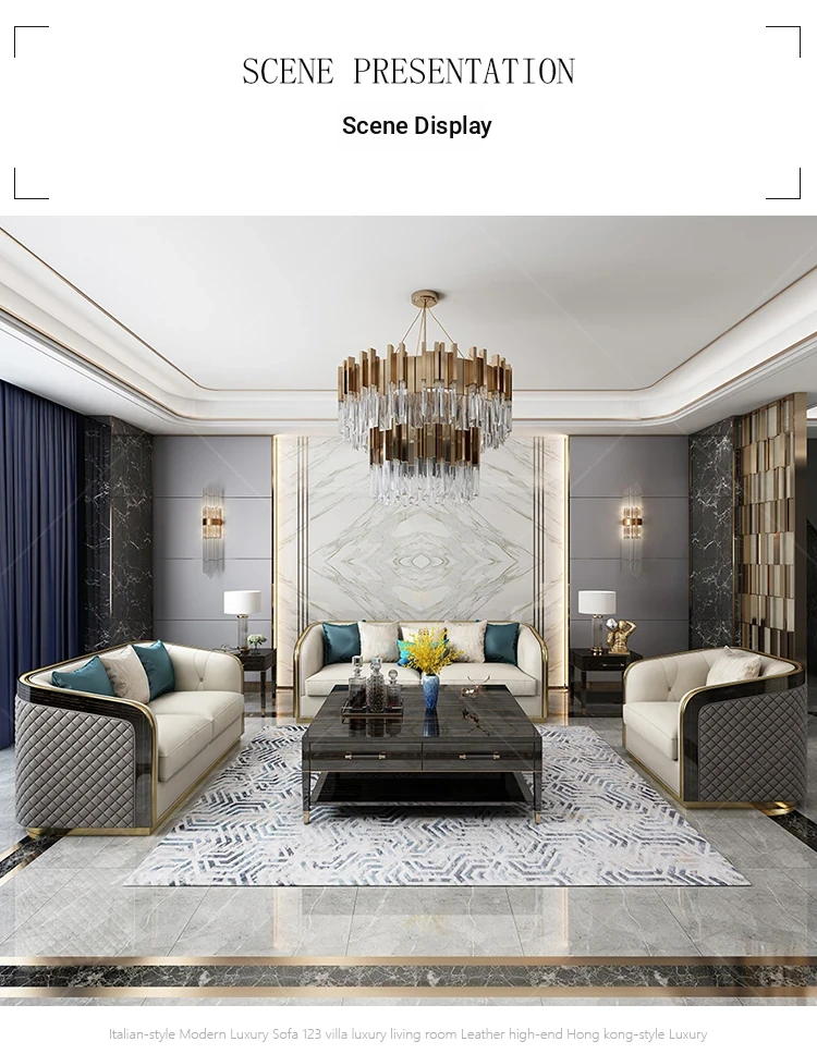 Italian Villa Luxury Leather Sofa Set - Modern Bentley Design for Living Room, Perfect for Spacious and Compact Spaces, Stylish Hong Kong Furniture
