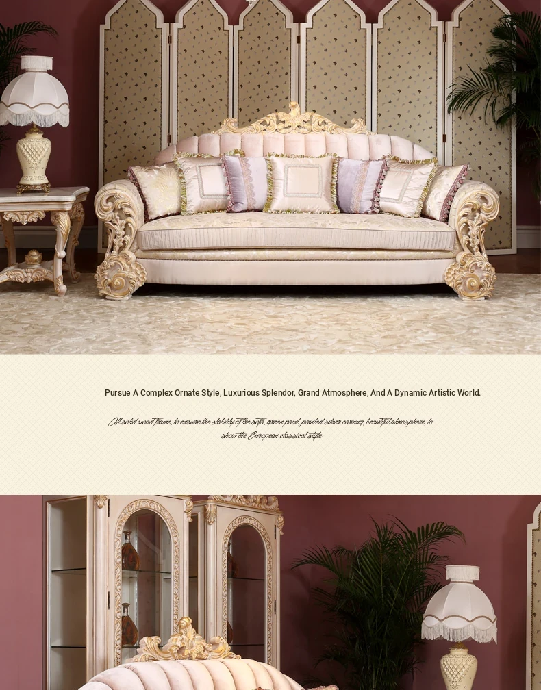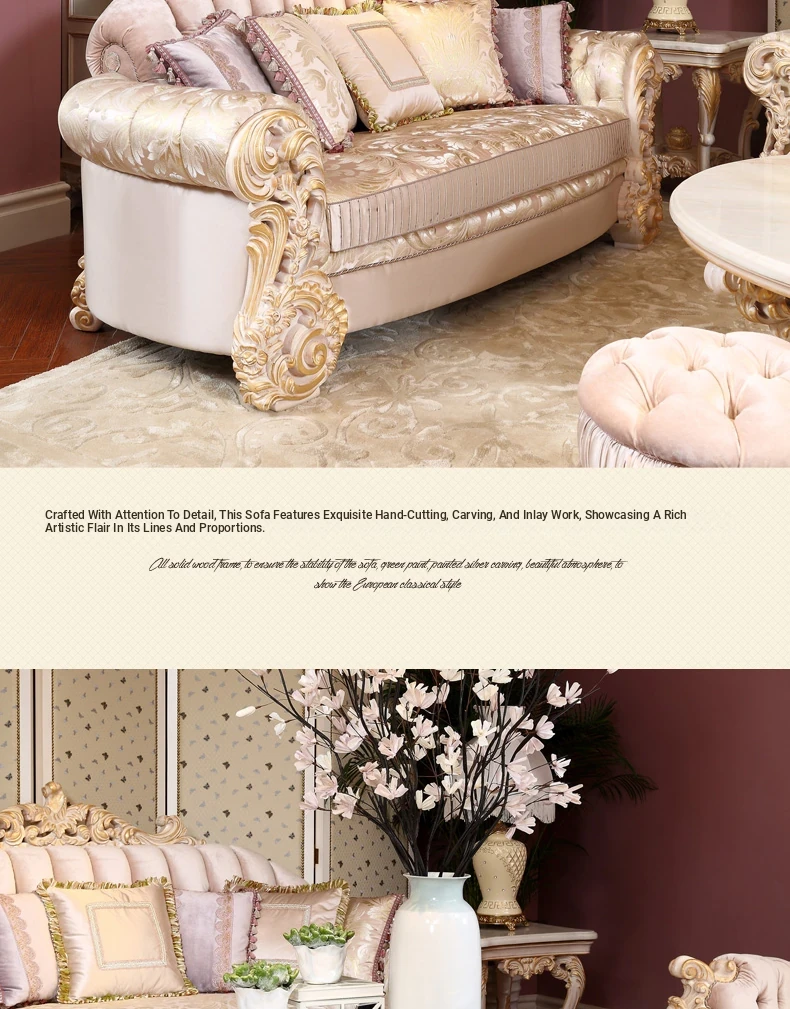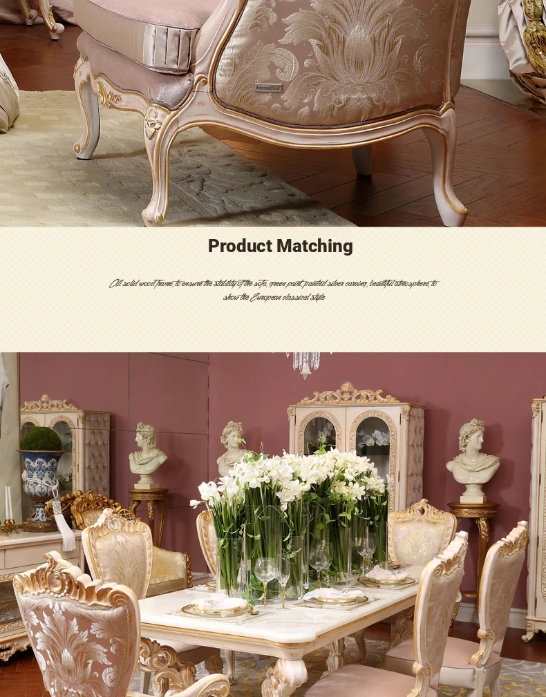 Luxurious European Style Solid Wood Fabric Sofa - Flantise French Vintage Living Room Coffee Table - High-End Villa Furniture for Elegant Homes