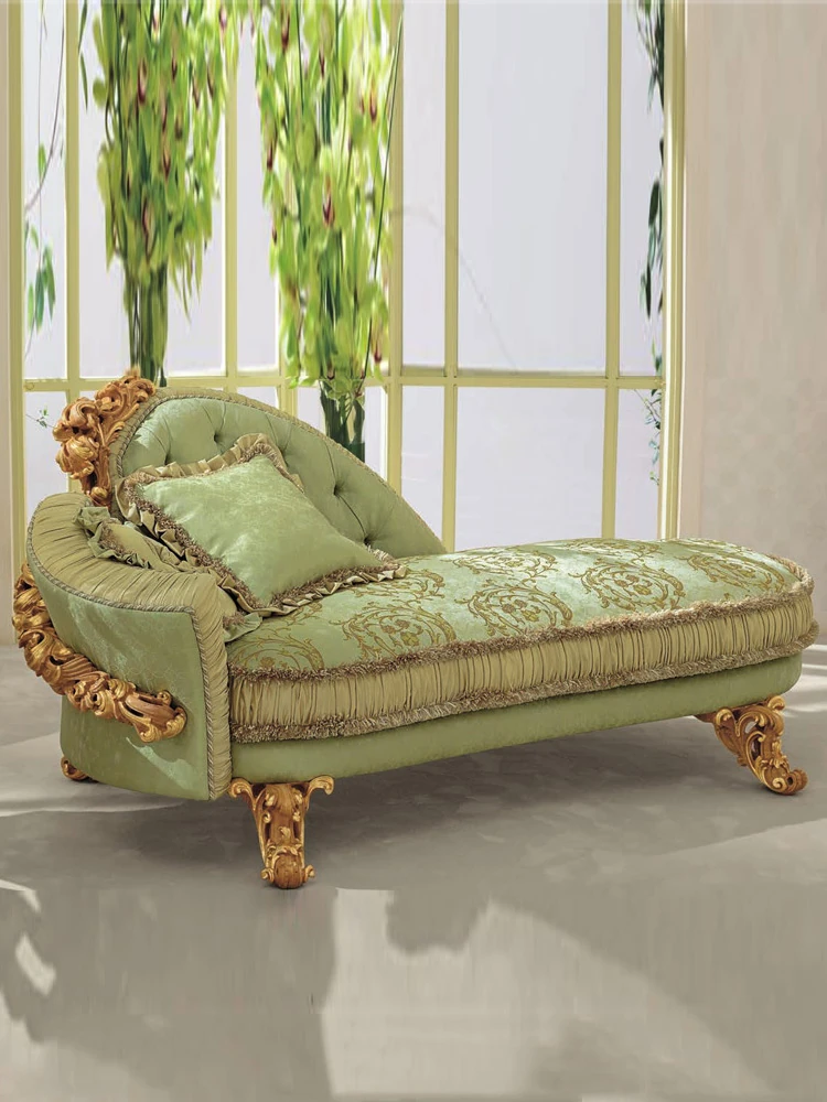 Luxury European-Style Chaise Lounge Chair - High-End Solid Wood Sofa Chair with Hand-Carved Italian Shell Design, Vintage Recliner and Statement Piece for Your Living Room