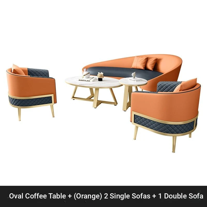 Orange sofa 1+1+2+3 + oval coffee table combination