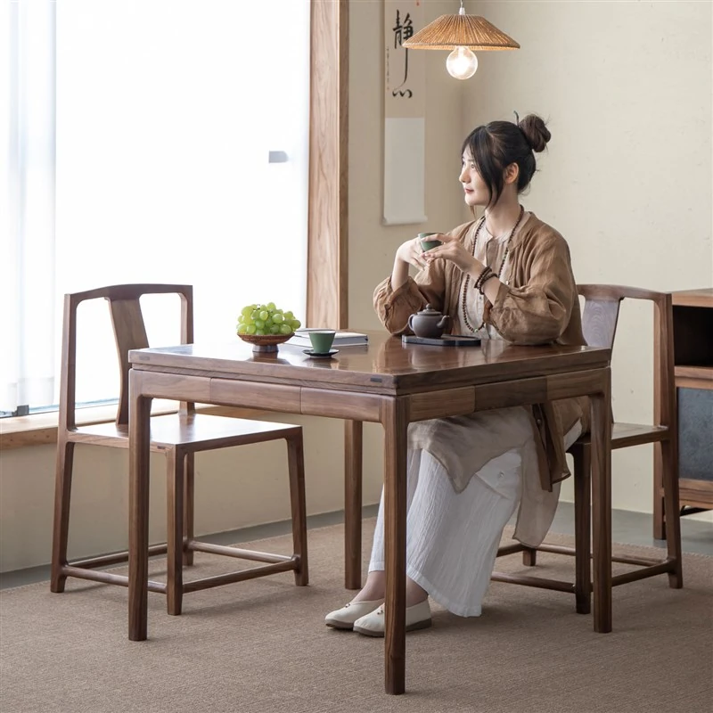 Miaoxuan New Chinese Style Square Table - Black Walnut Solid Wood, Perfect for Dining, Tea Houses, and Game Rooms - Elegant 8 Immortals Table Design