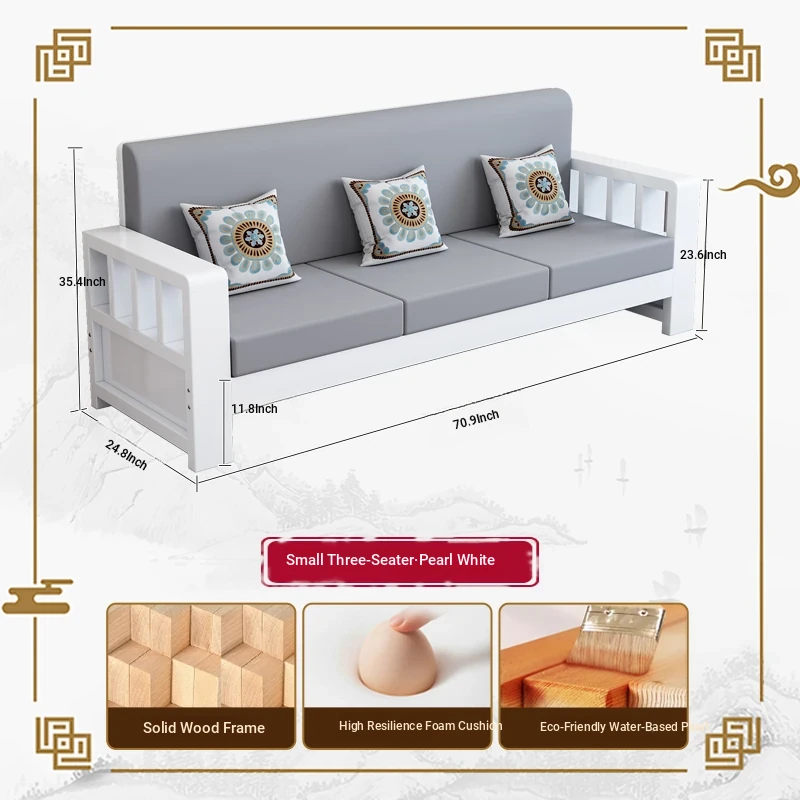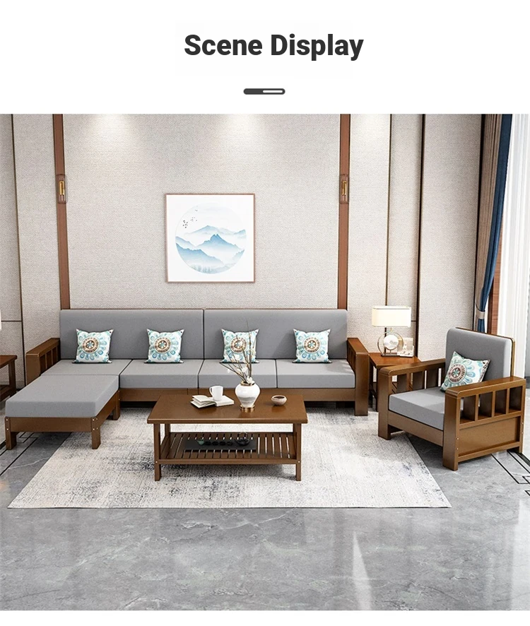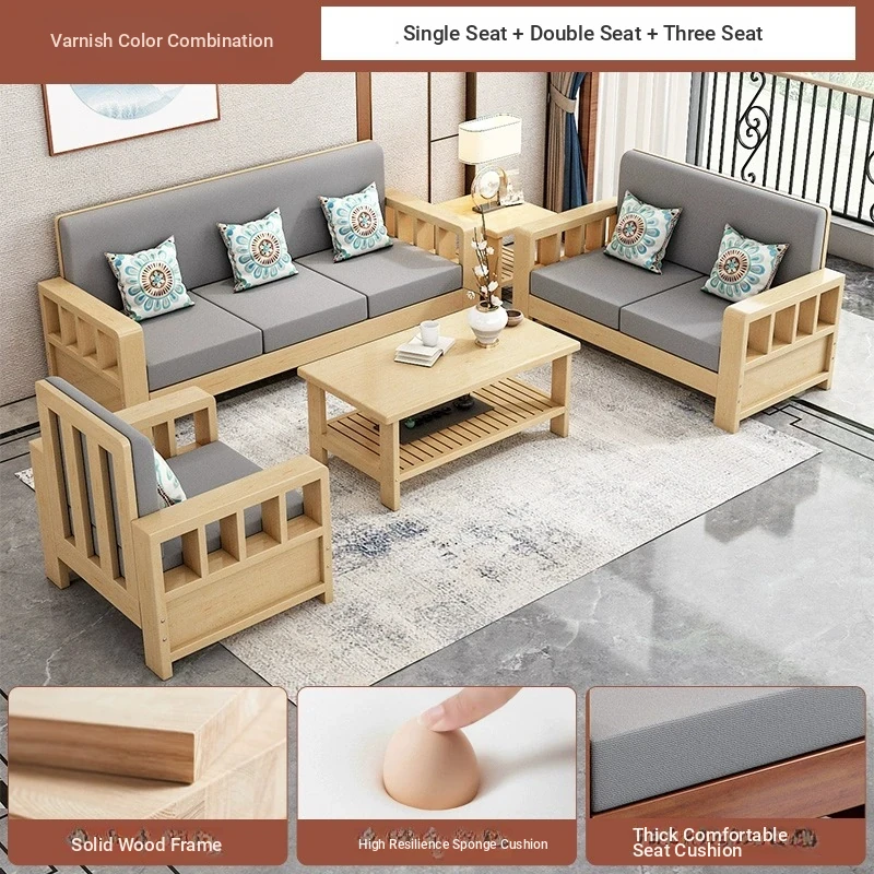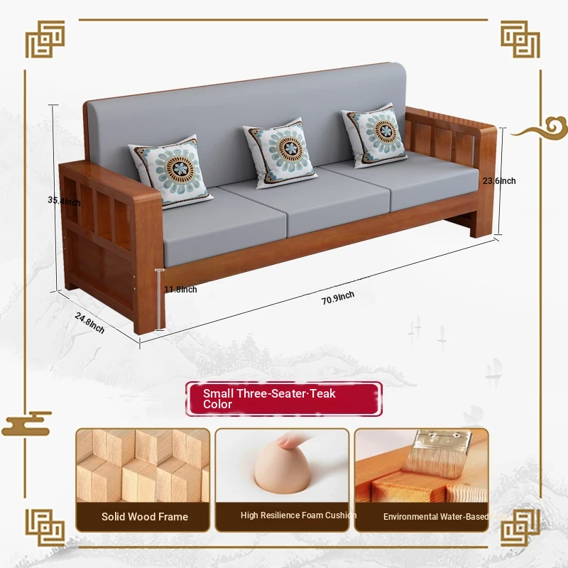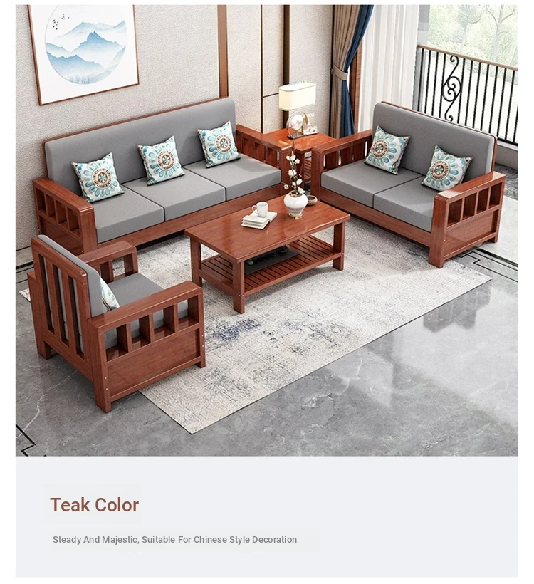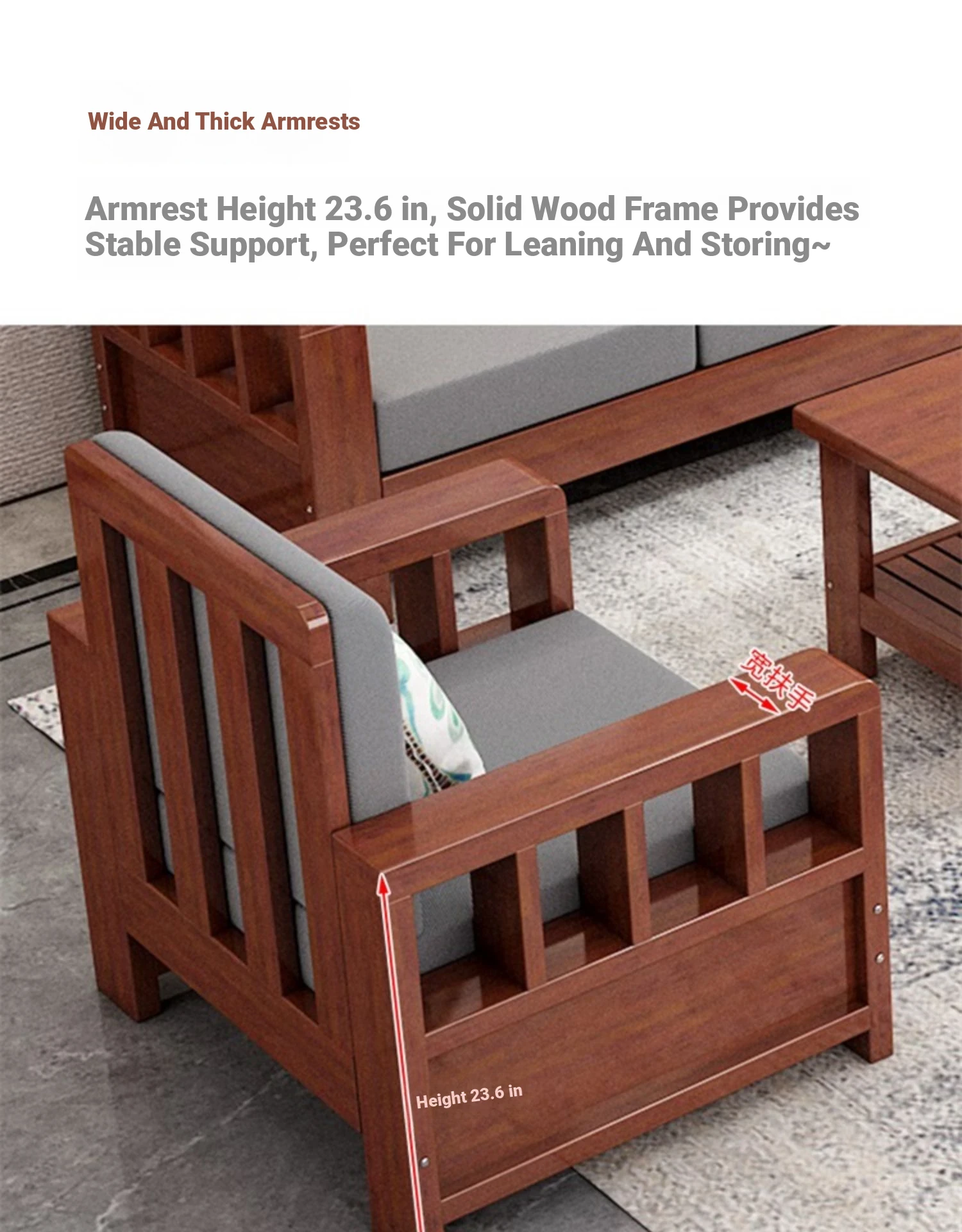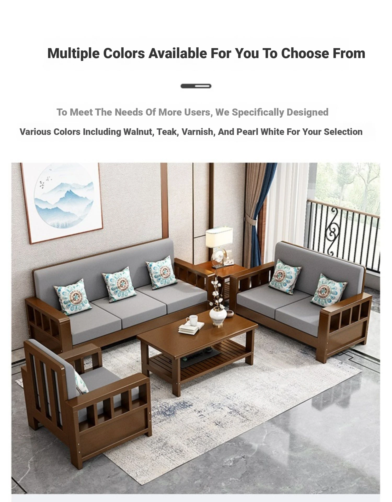 New Chinese Style Solid Wood Sofa Set for Living Room - Complete with Coffee Table, Perfect for Family Use, Ideal for Rural Homes, Winter Collection