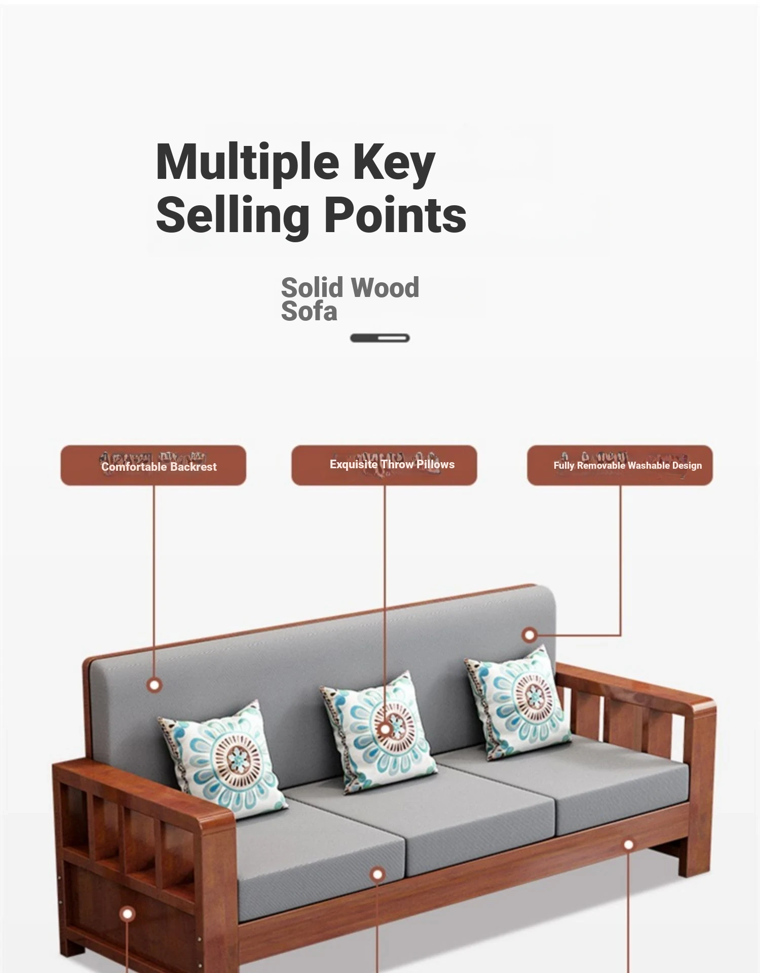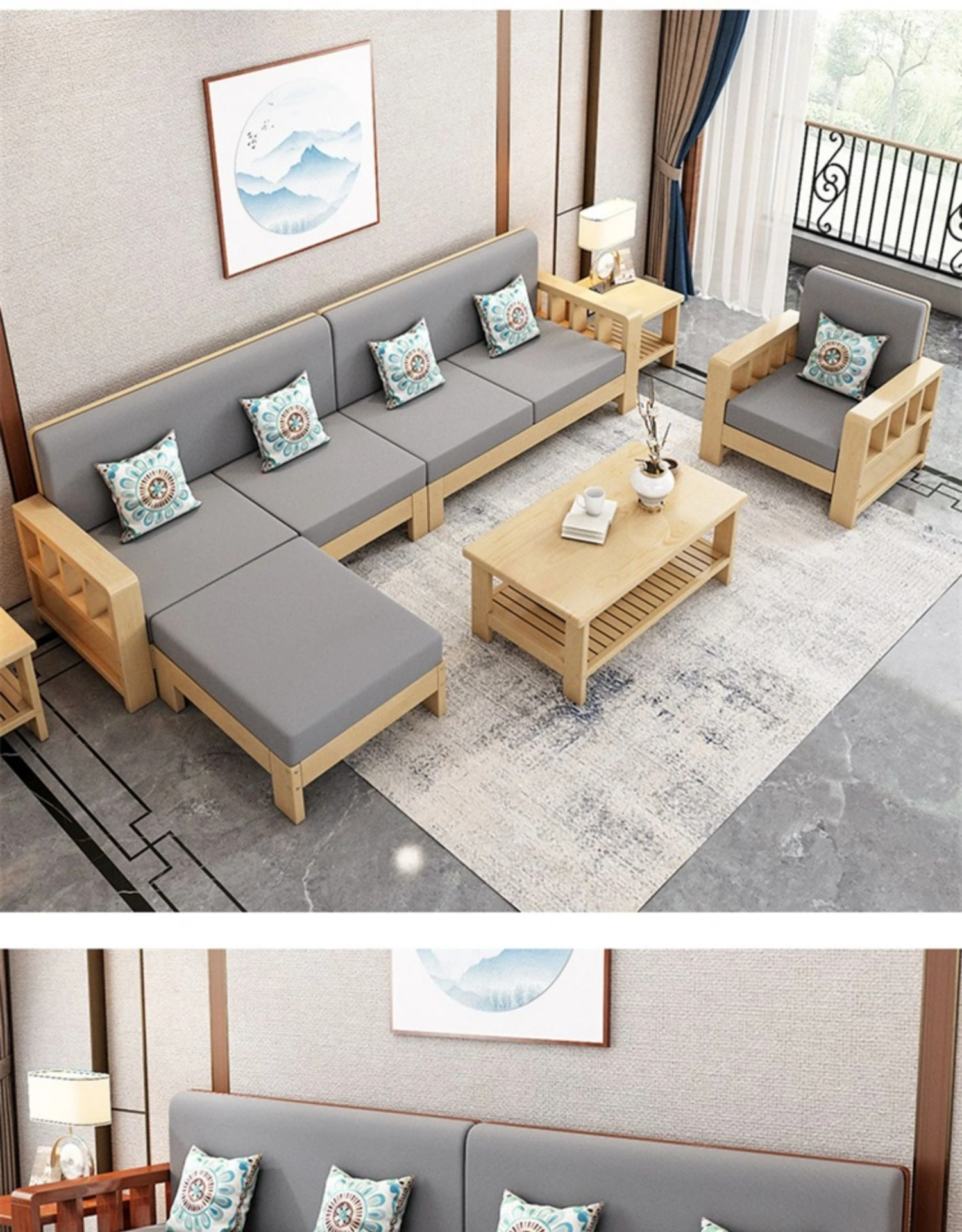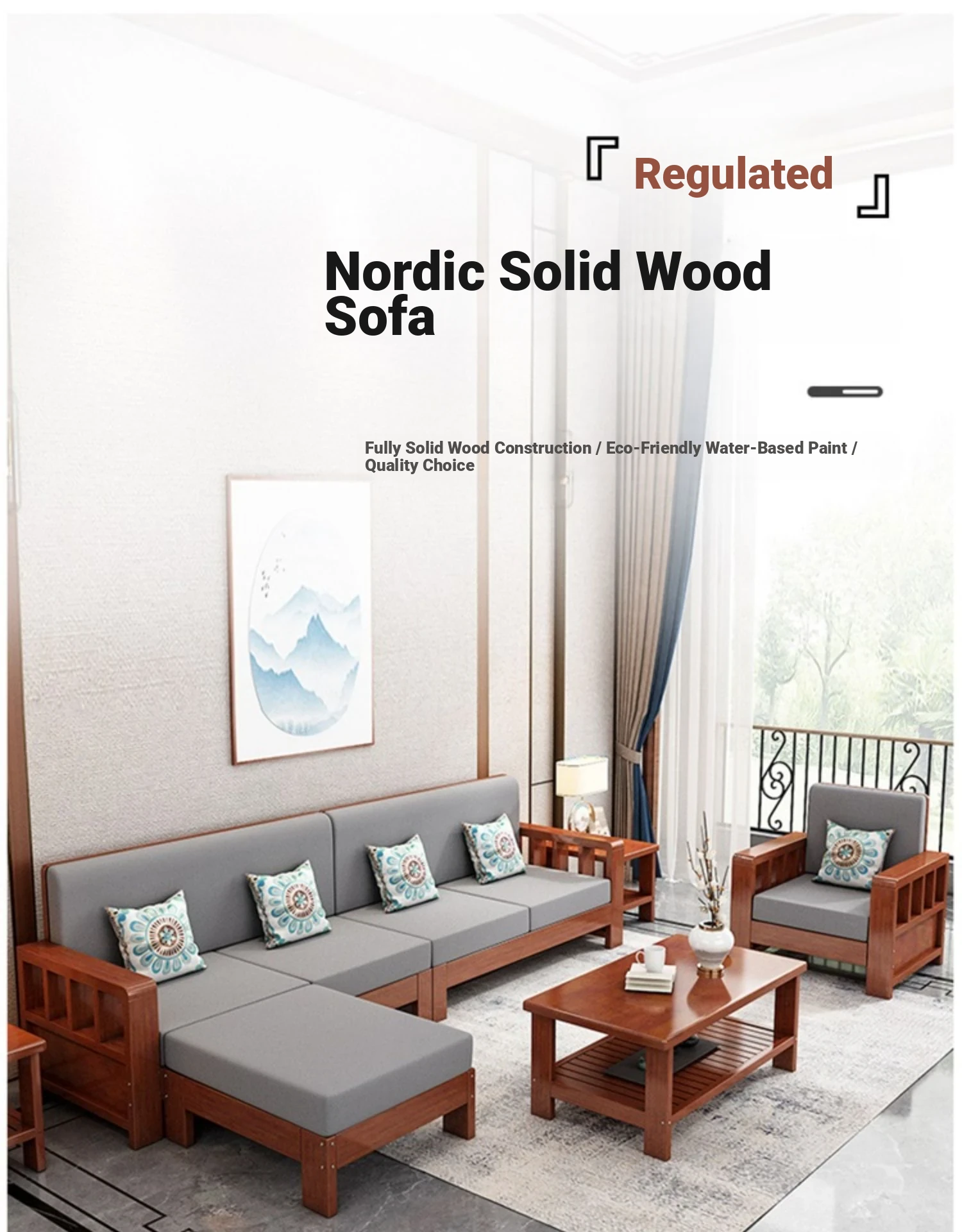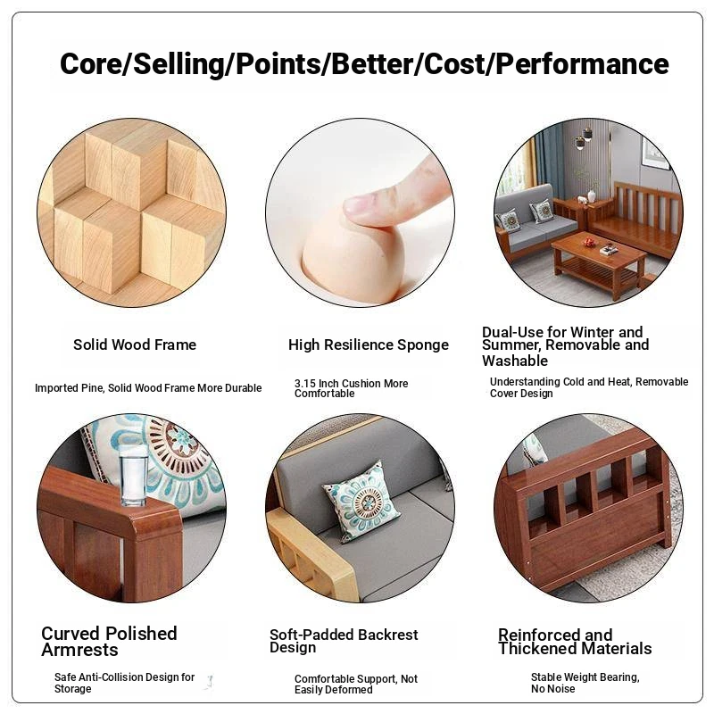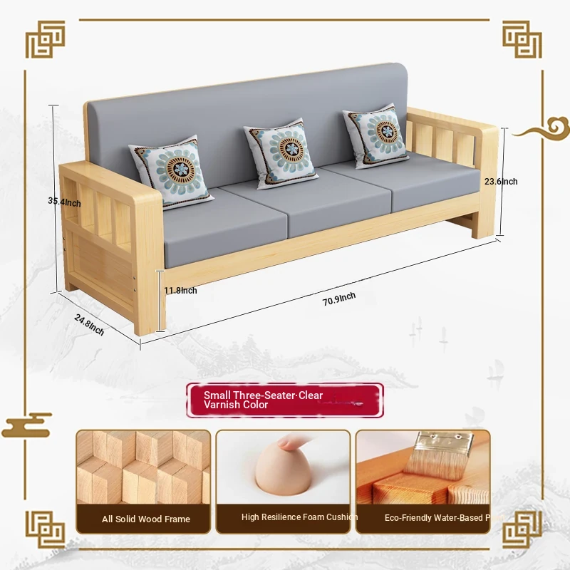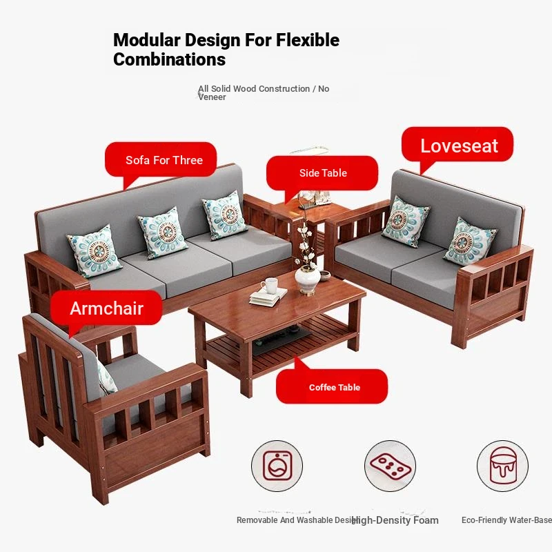 New Chinese Style Solid Wood Sofa Set for Living Room - Complete with Coffee Table, Perfect for Family Use, Ideal for Rural Homes, Winter Collection