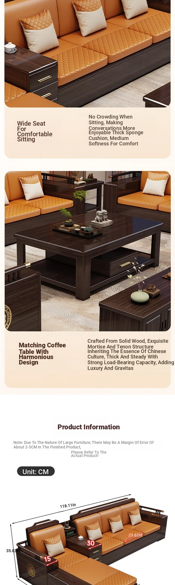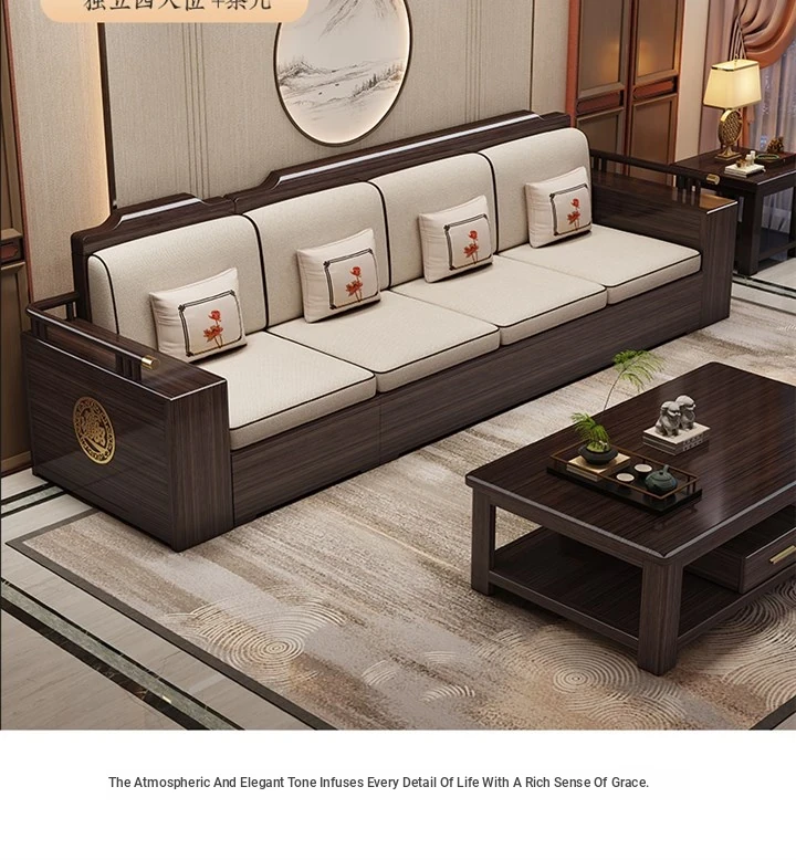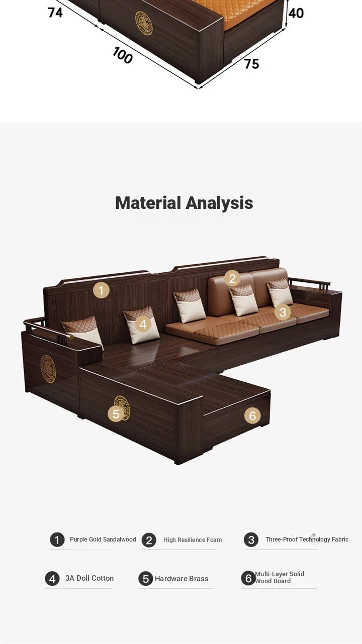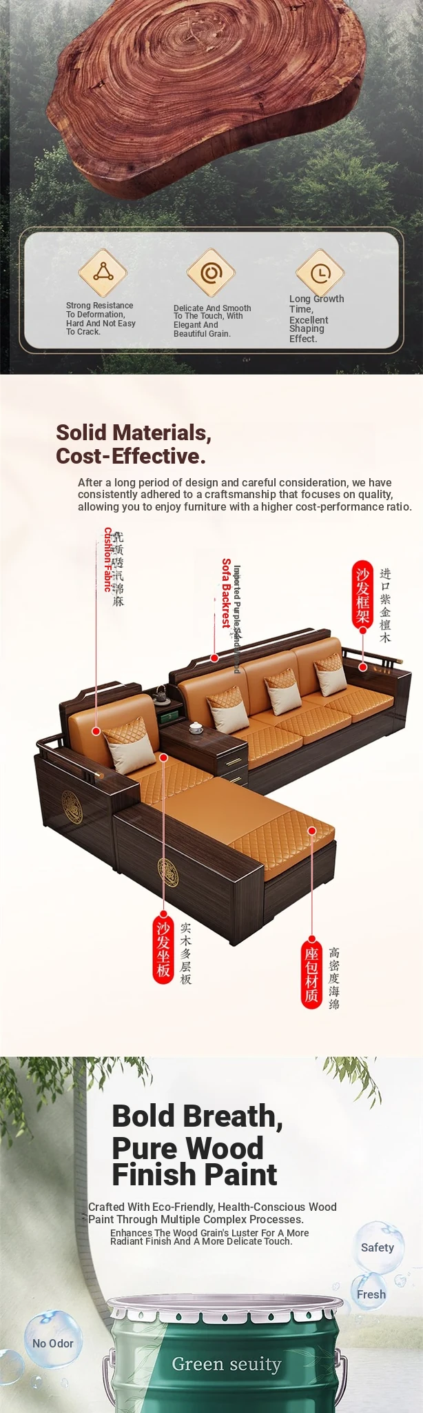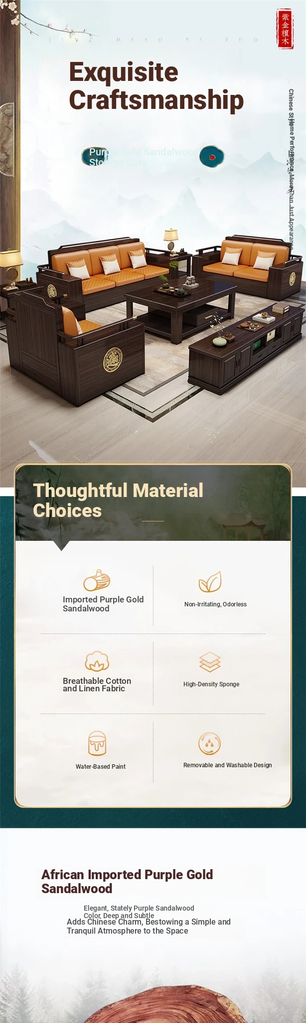 New Chinese Style Solid Wood Sofa Set - Luxurious Purple Gold Sandalwood for Living Room, Ideal for All Sizes, Winter/Summer Versatile with Storage Features
