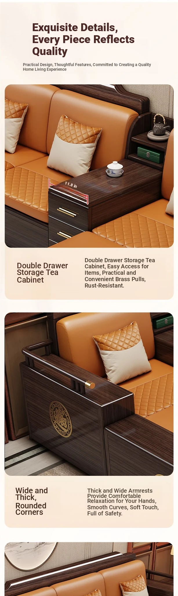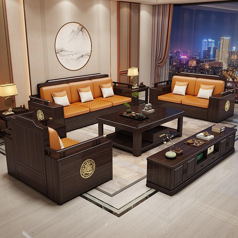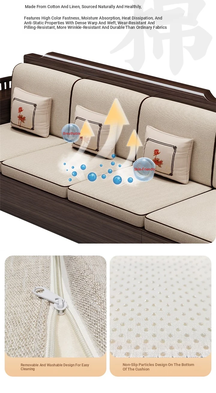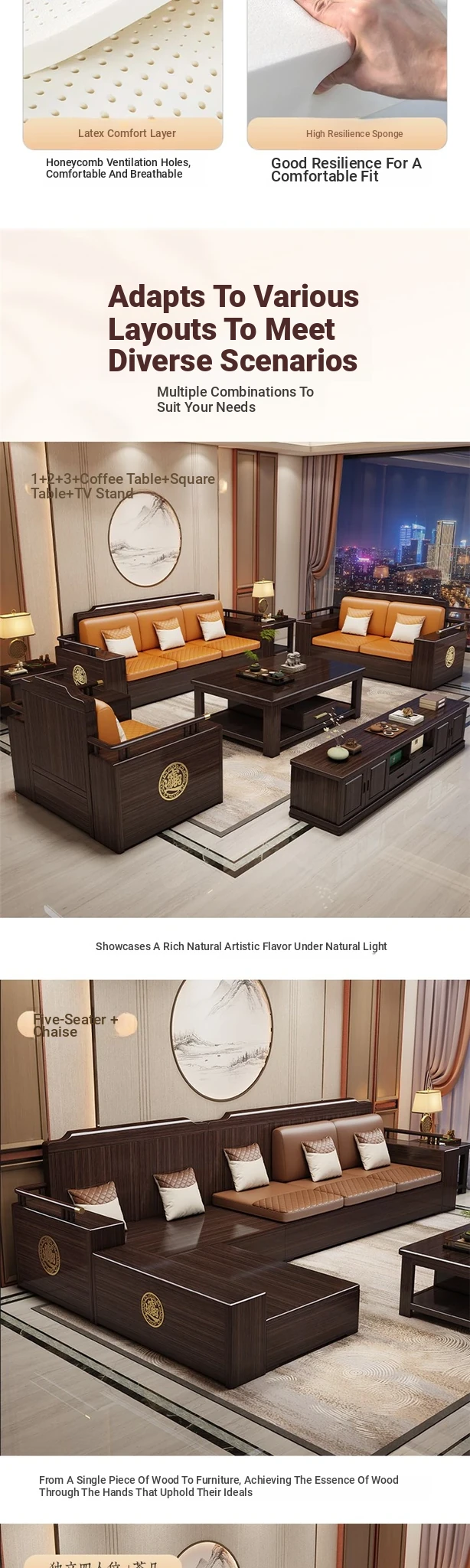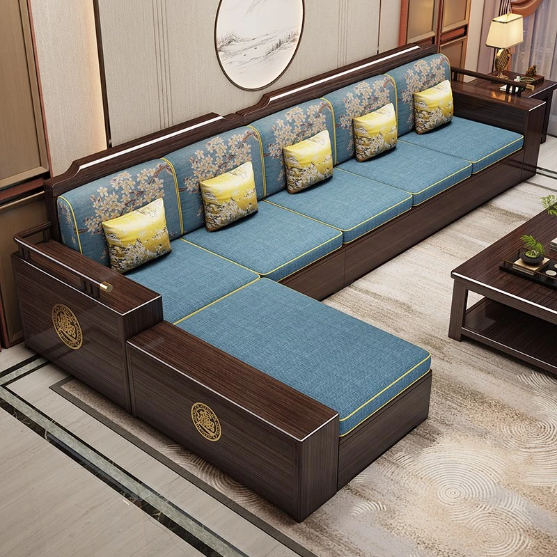 New Chinese Style Solid Wood Sofa Set - Luxurious Purple Gold Sandalwood for Living Room, Ideal for All Sizes, Winter/Summer Versatile with Storage Features