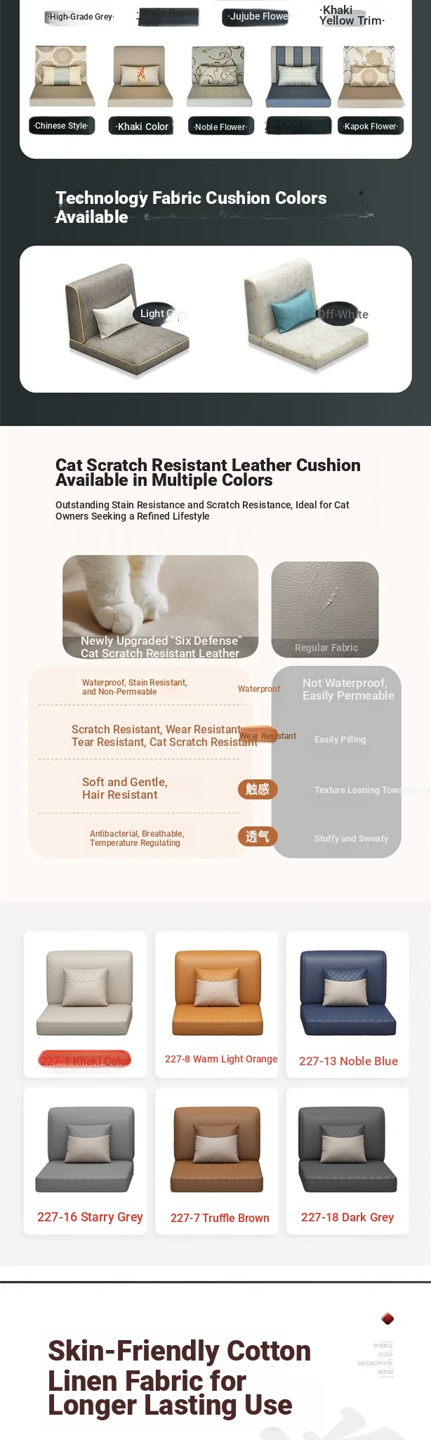 [Cotton and Linen Cushion] Four + Imperial Couch + Tea Table + TV Cabinet + Single