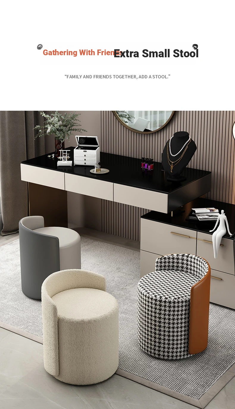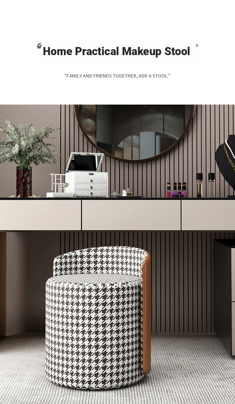 Nordic Style Makeup Stool – Chic Vanity Chair for Home, Ideal for Influencer Photography, Minimalist Design, Perfect for Living Room, Elegant and Compact, Round Shape