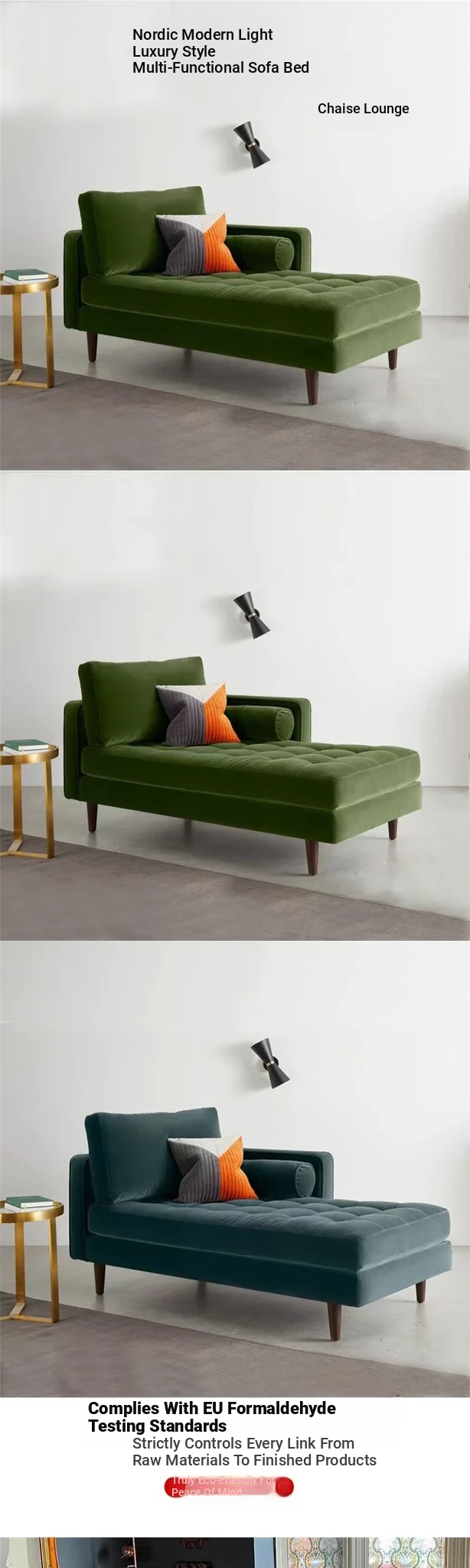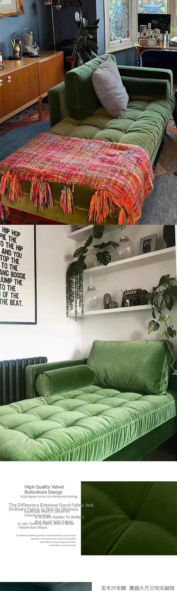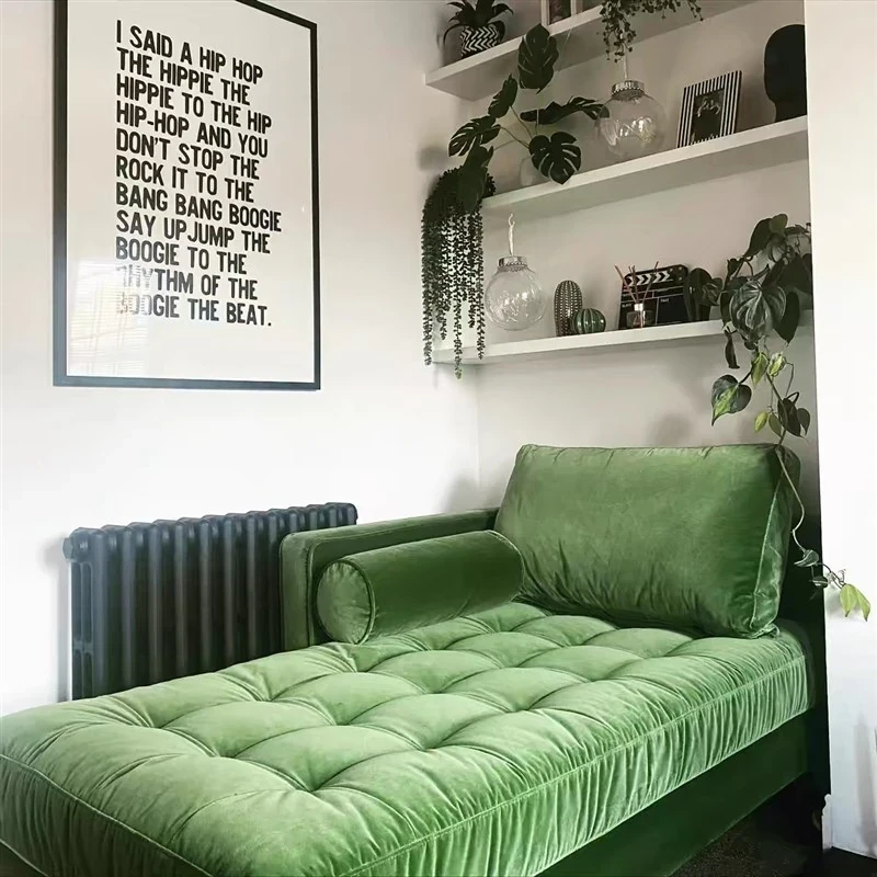 Nordic Style Olive Green Chaise Lounge - Elegant and Minimalist Daybed for Small Spaces, Perfect for Modern Living Rooms and Bedrooms.