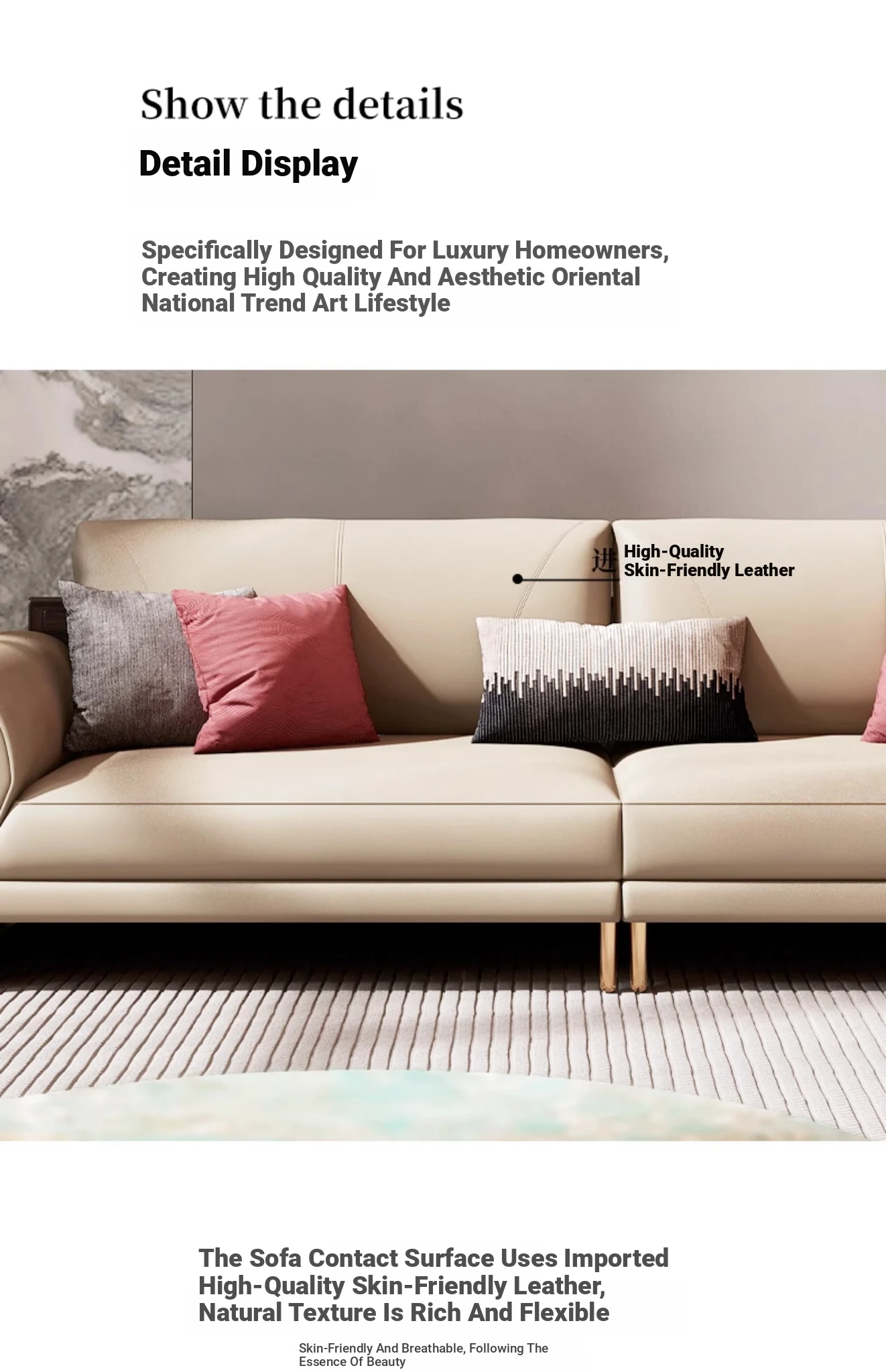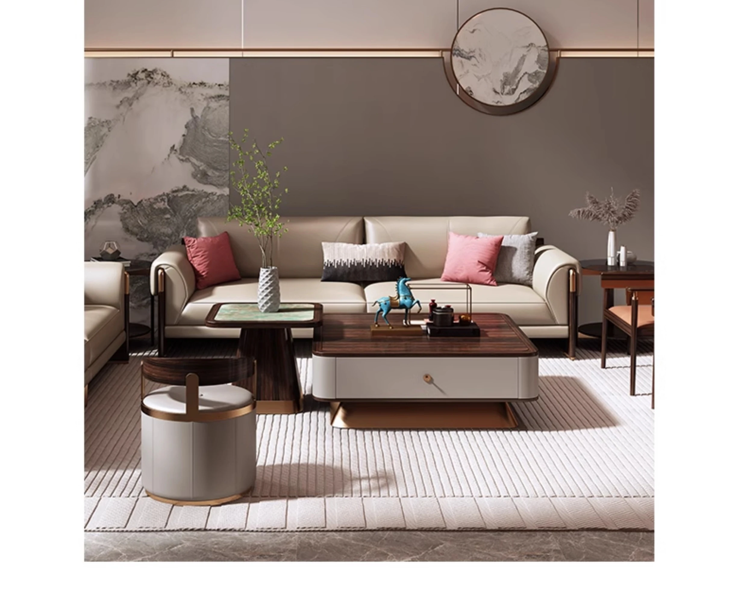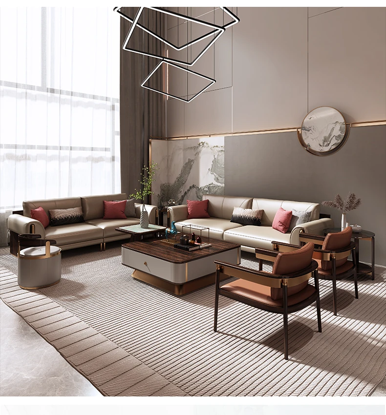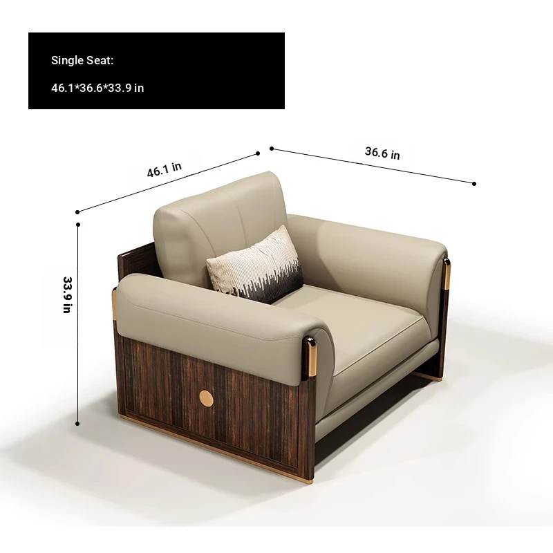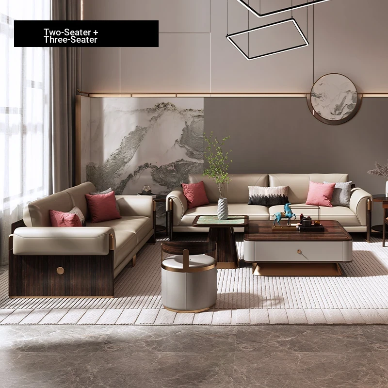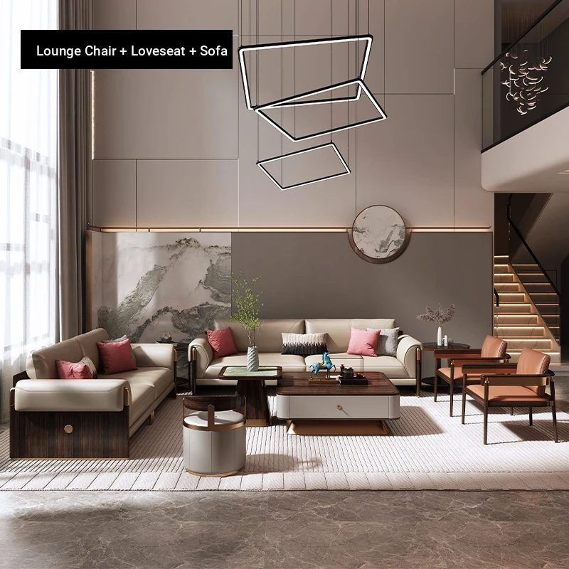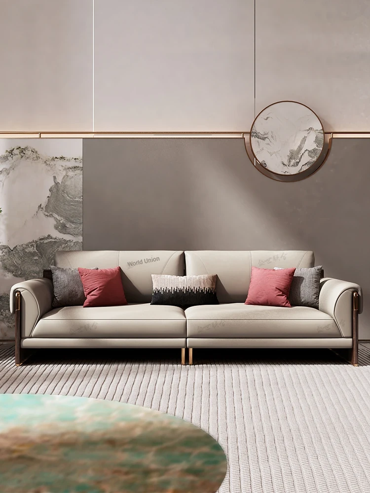 Shengshi United Furniture Modern Chinese Style Genuine Leather Sofa Set - Luxurious 1+2+3 Living Room Furniture Combination for an Elegant Home Decor