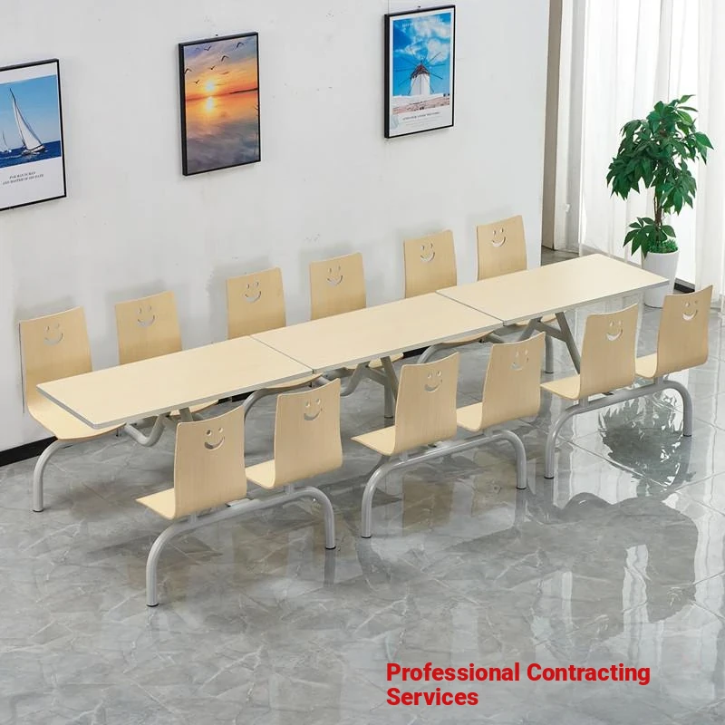 Stainless Steel Cafeteria Table and Chair Set for 4-6 People - Durable, Space-Saving Design for School, Company, and Fast Food Restaurants