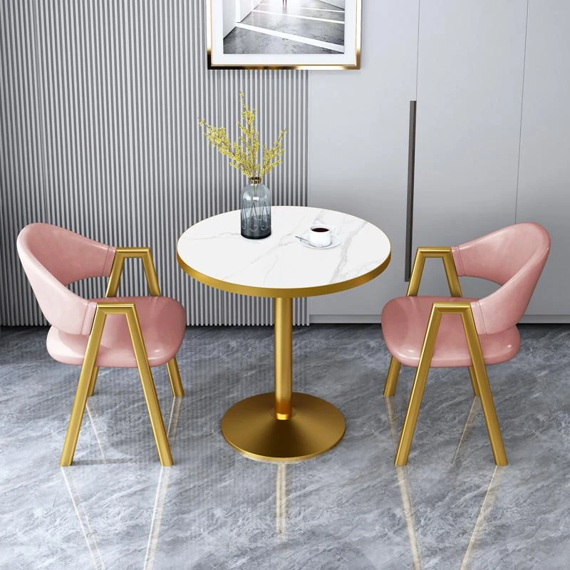 Watermelon Red Imitation Stone Round Table 2 Chair