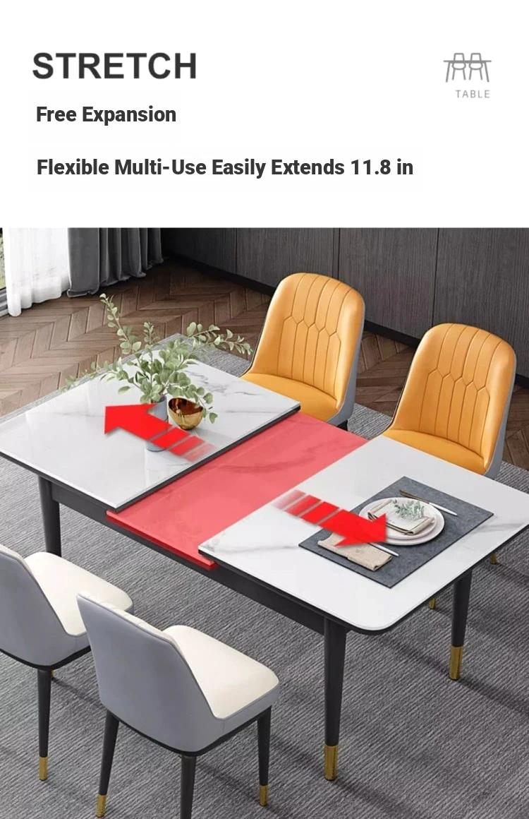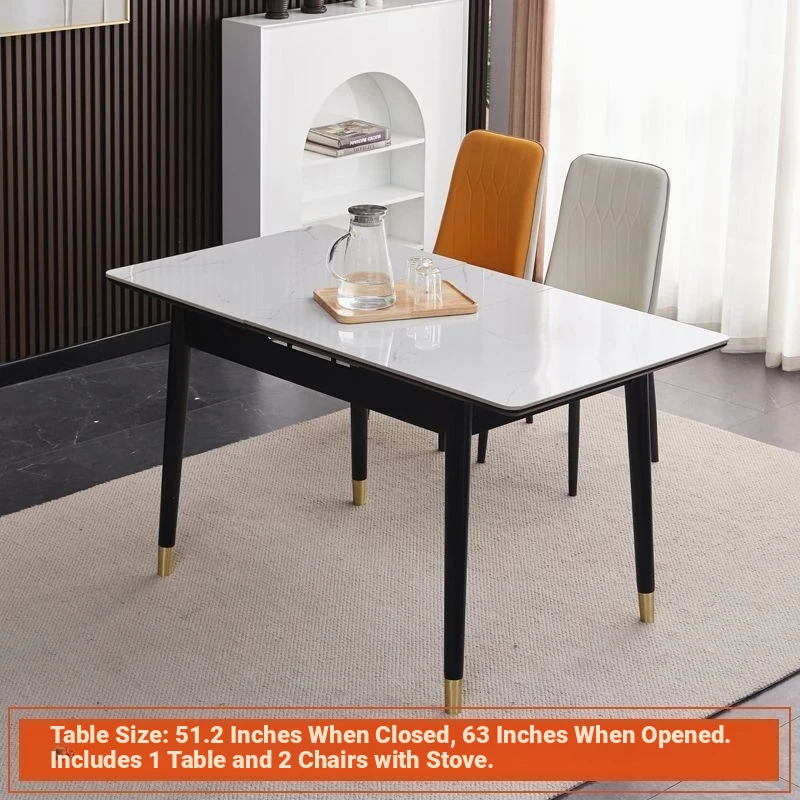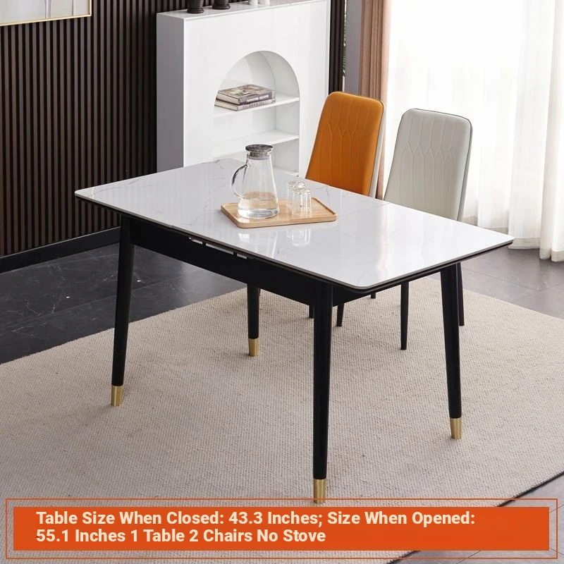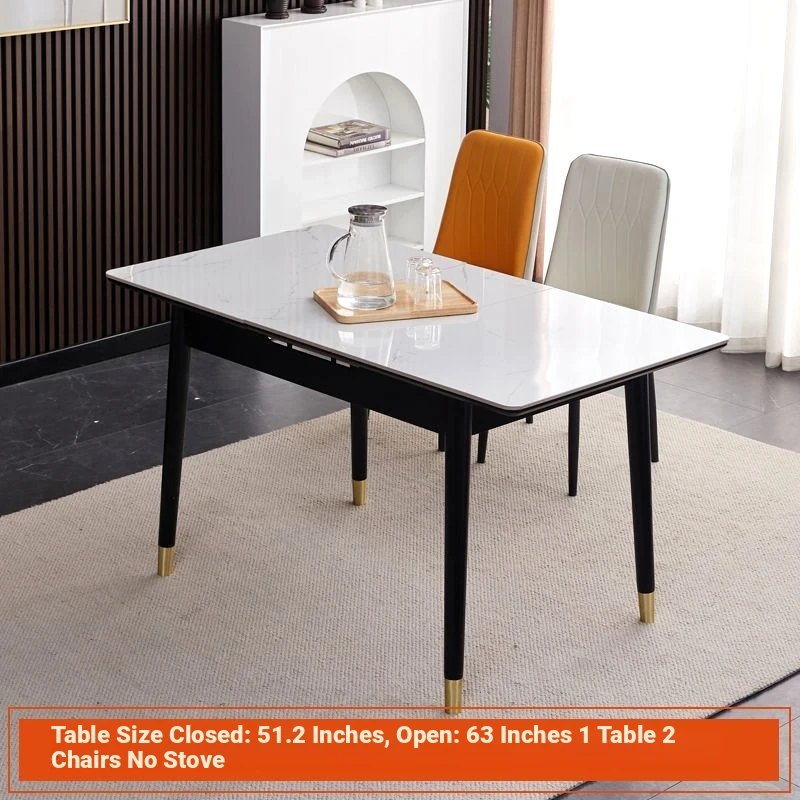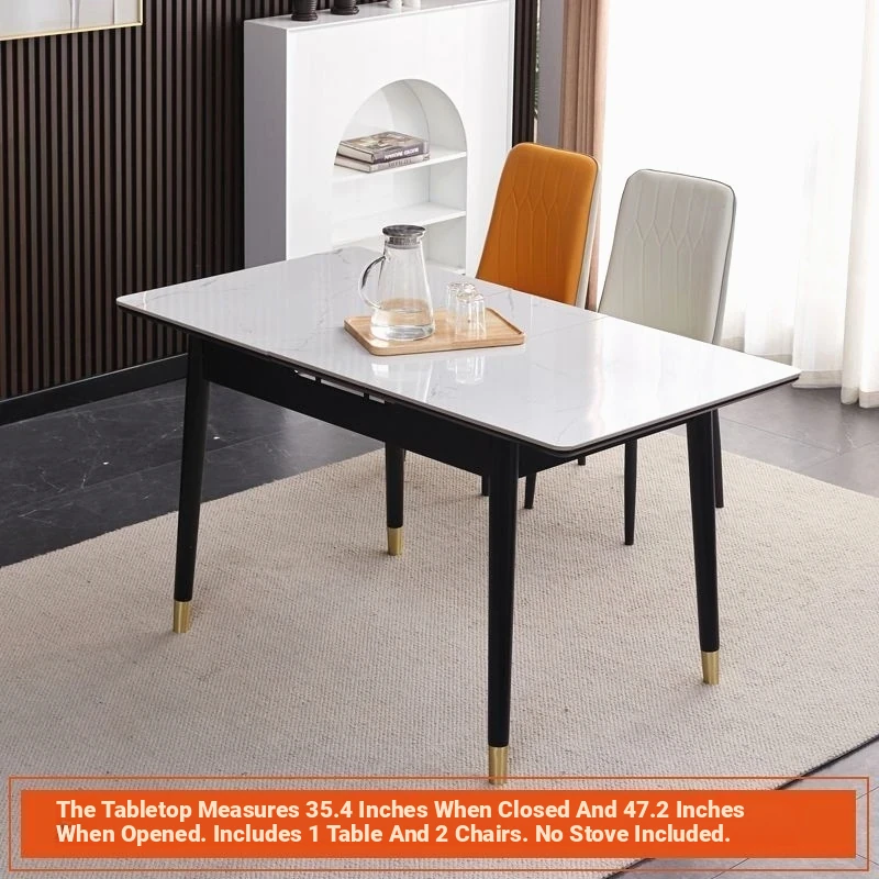 Stylish Rock Plate Dining Table and Chair Set - Space-Saving Solid Wood Folding Table for Small Homes, Multi-Functional Expandable Dining Table with Induction Stove Compatibility