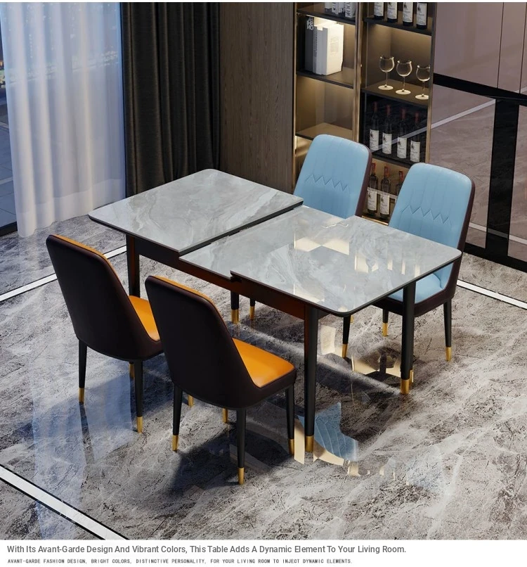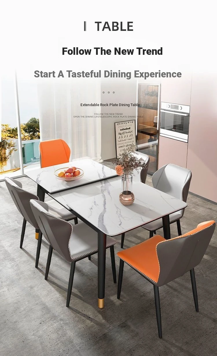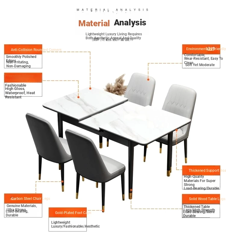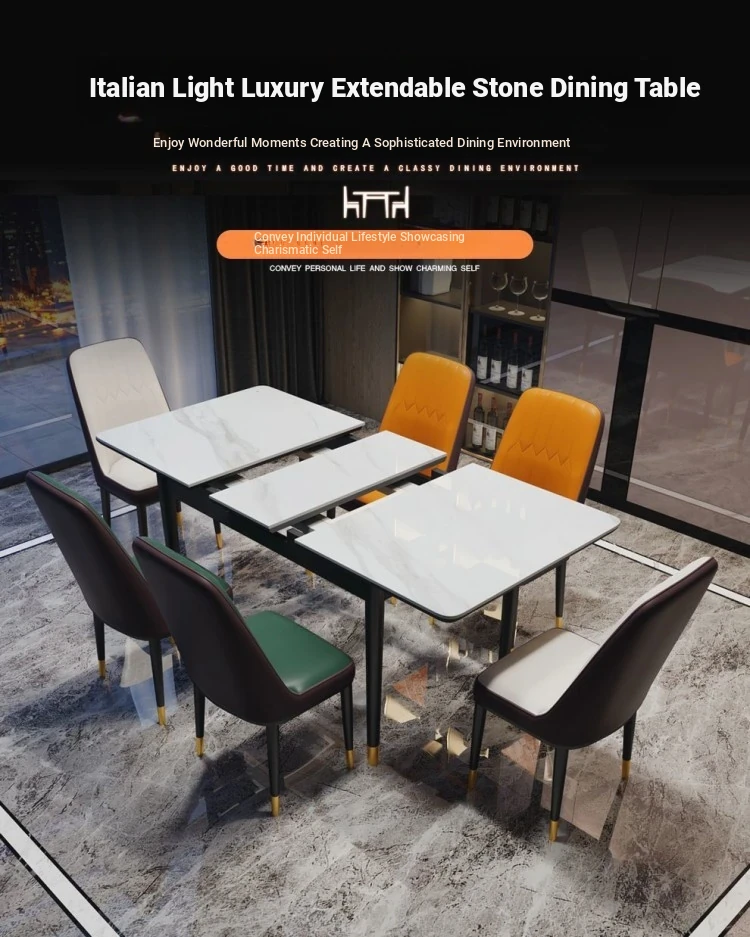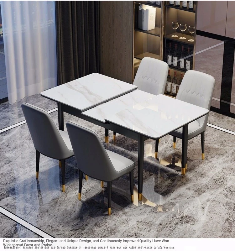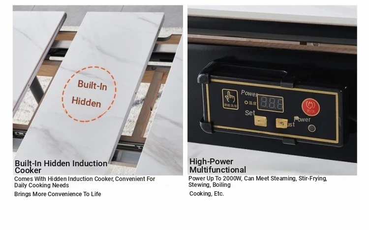 Stylish Rock Plate Dining Table and Chair Set - Space-Saving Solid Wood Folding Table for Small Homes, Multi-Functional Expandable Dining Table with Induction Stove Compatibility
