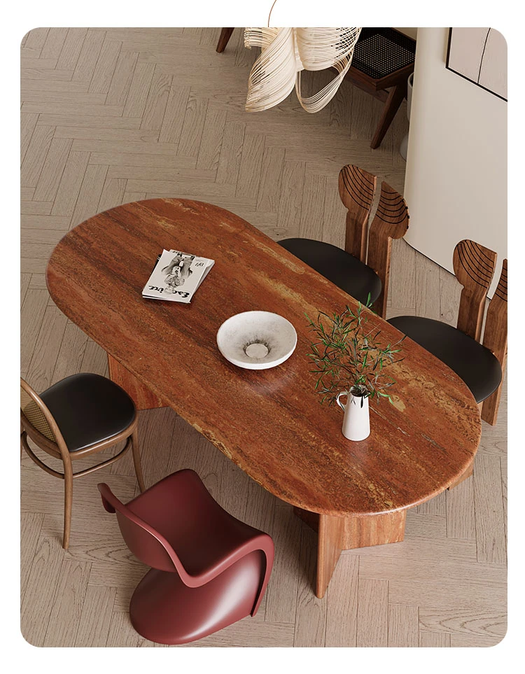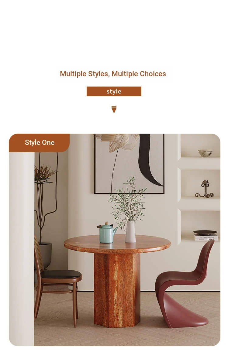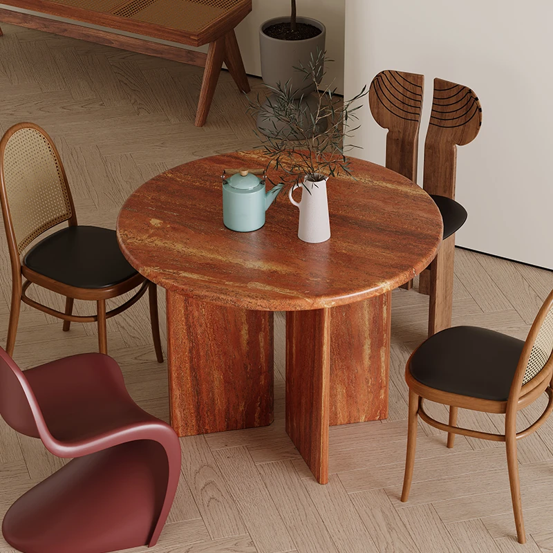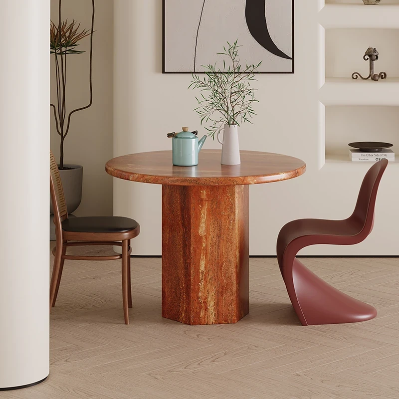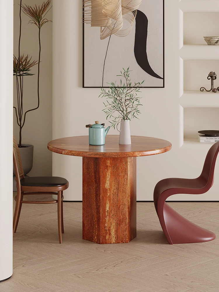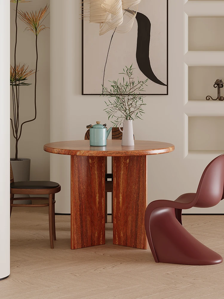 Wabi-Sabi Style Natural Red Cave Stone Round Dining Table - Minimalist Marble Luxury Table for Small Apartments, Perfect for Living Rooms and Dining Areas