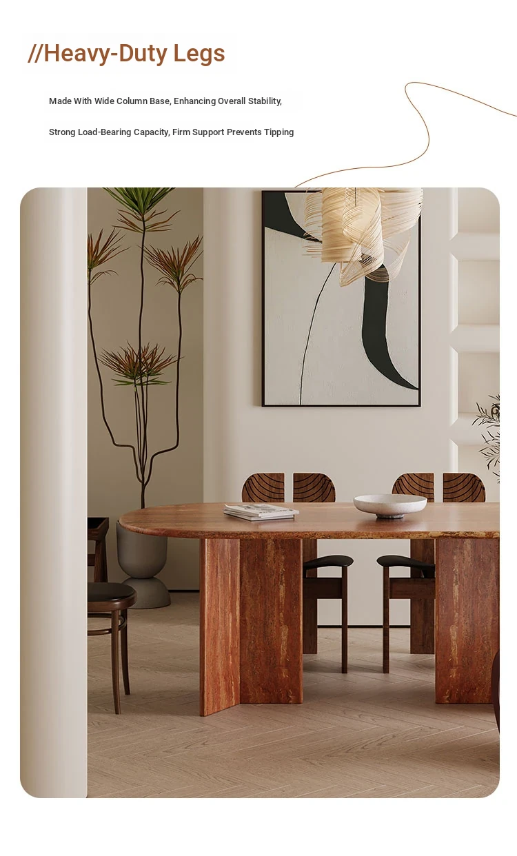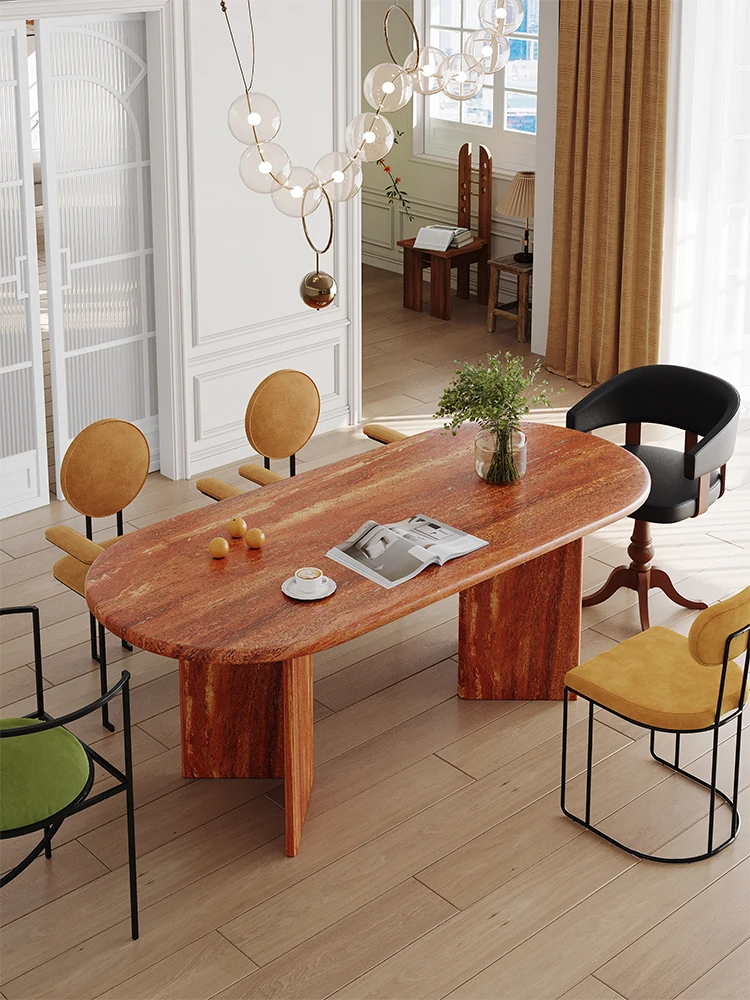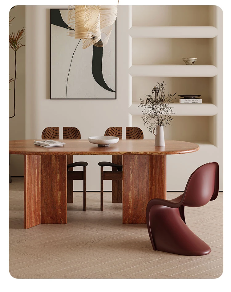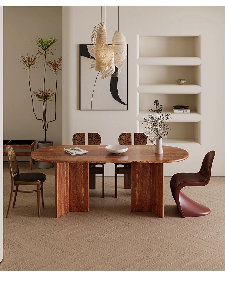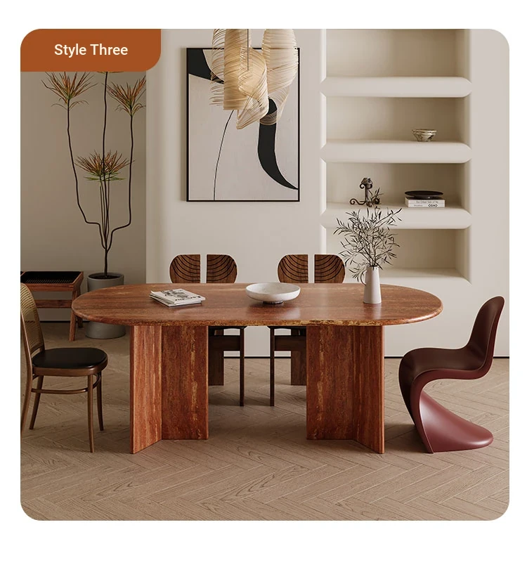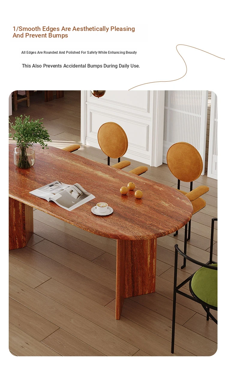 Wabi-Sabi Style Natural Red Cave Stone Round Dining Table - Minimalist Marble Luxury Table for Small Apartments, Perfect for Living Rooms and Dining Areas
