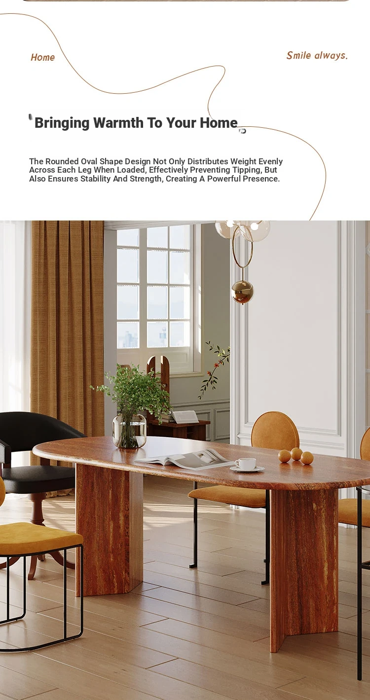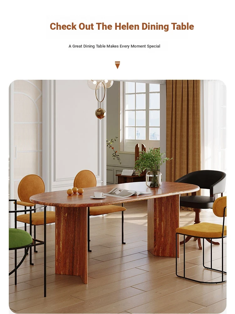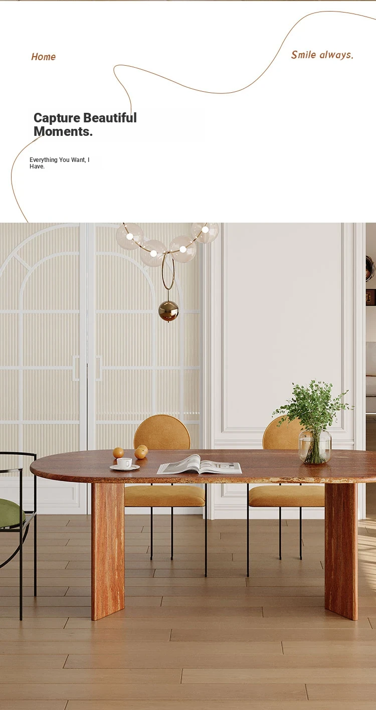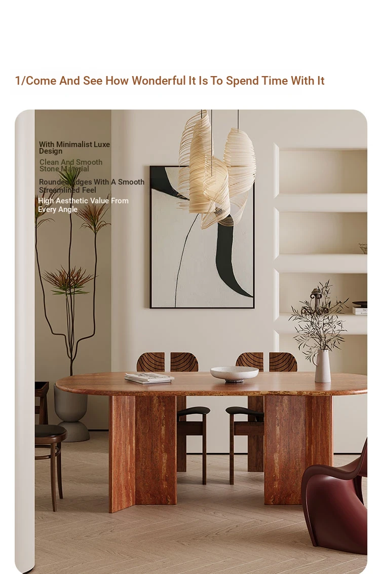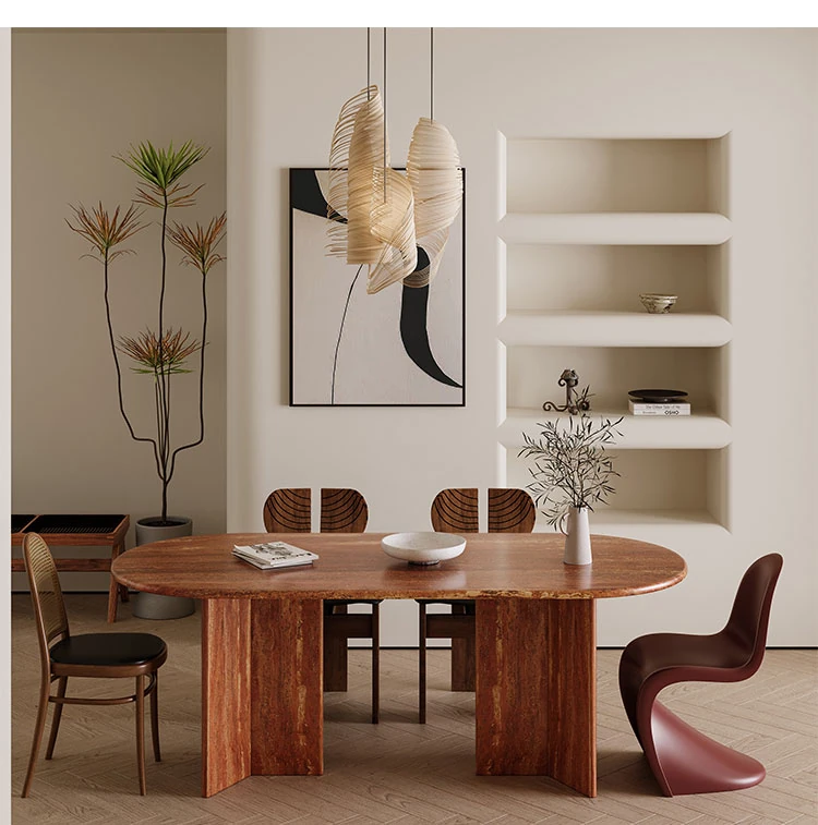 Wabi-Sabi Style Natural Red Cave Stone Round Dining Table - Minimalist Marble Luxury Table for Small Apartments, Perfect for Living Rooms and Dining Areas