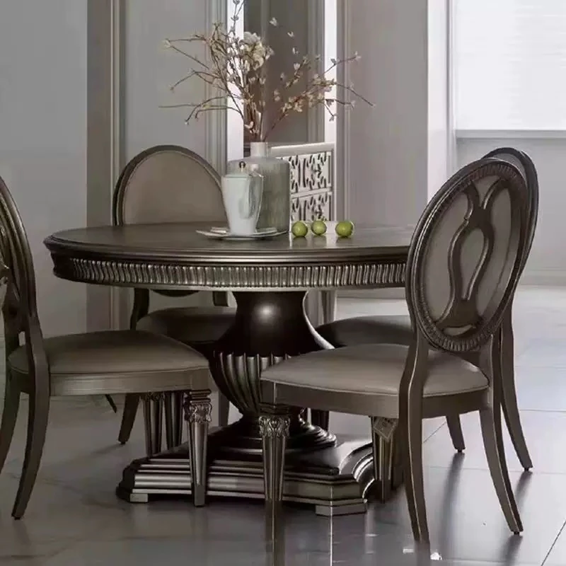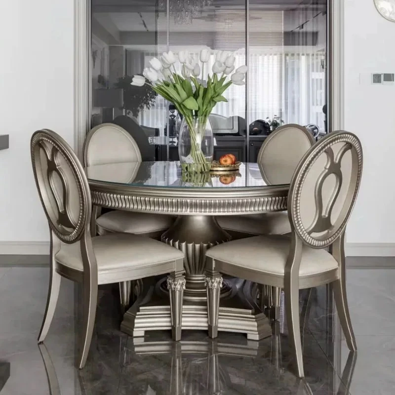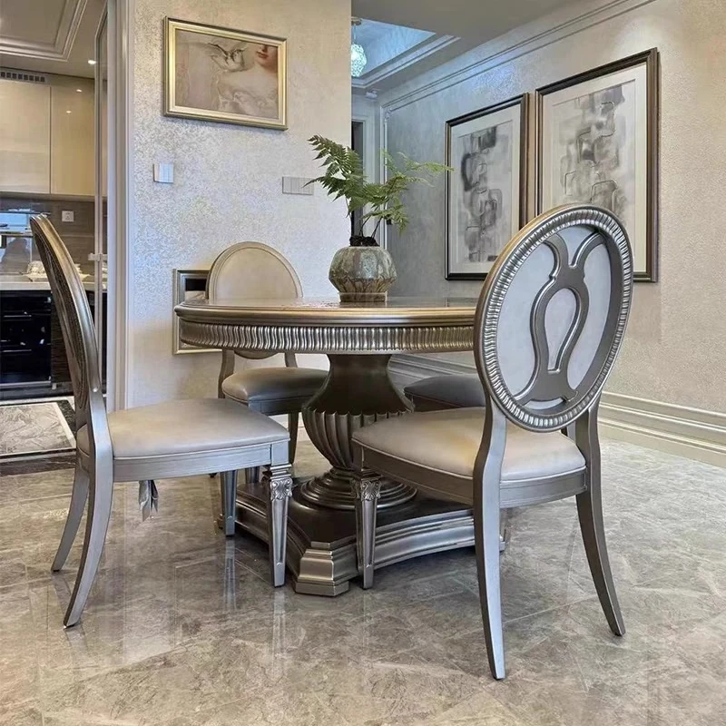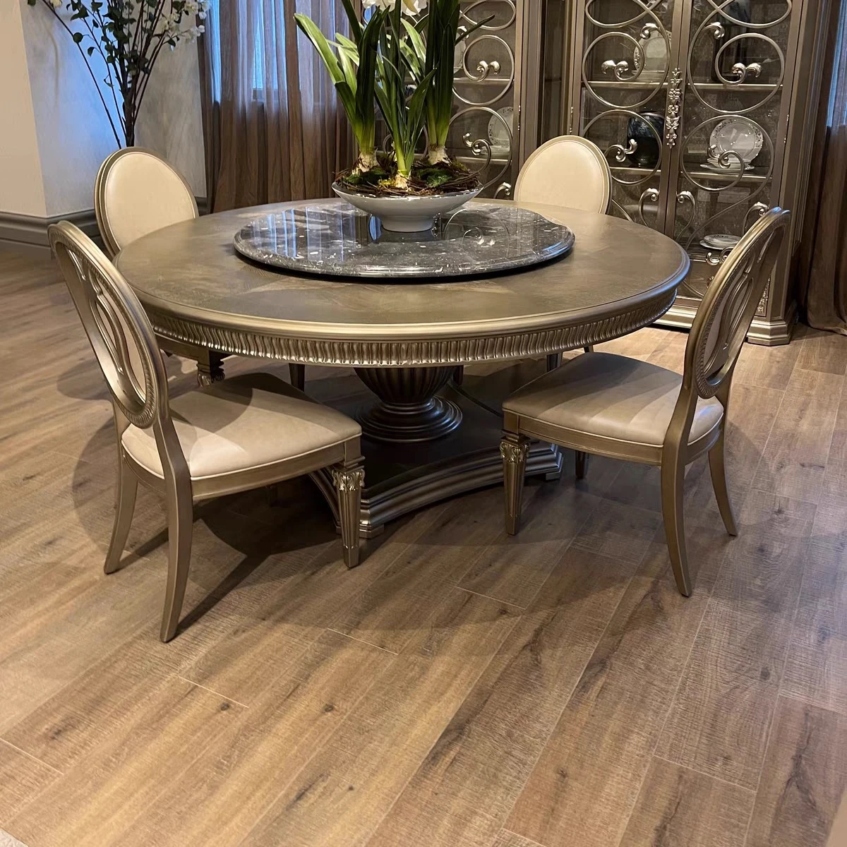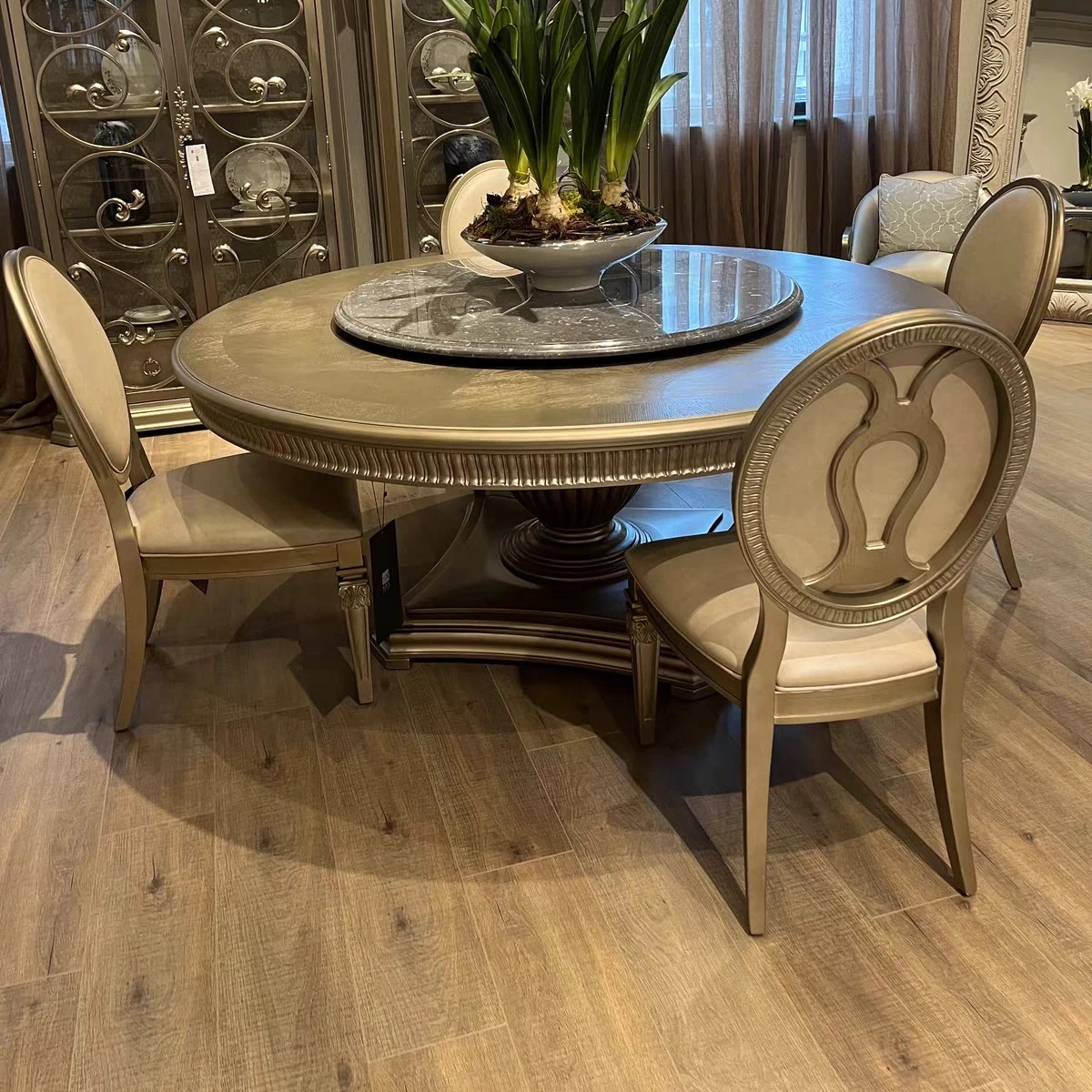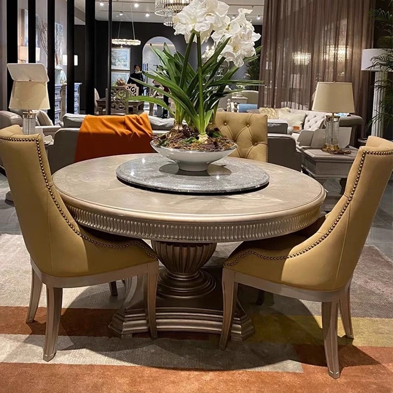アメリカンアートスタイルの全木製パネル、ラグジュアリーな大理石天板を使用した丸型ダイニングテーブル。おしゃれな邸宅にぴったりの軽やかな印象を演出する、優雅で高品質な食卓をお楽しみください。