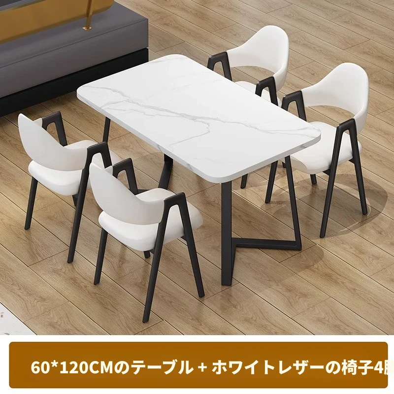 120x60ホワイト長テーブル+ホワイトナパ革椅子x4