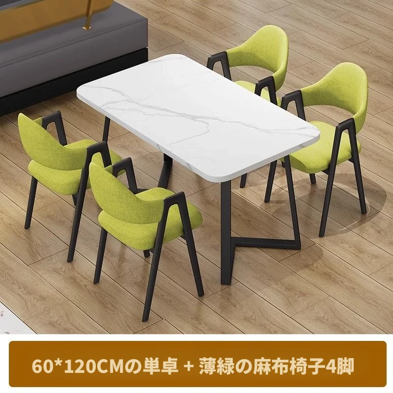 120x60ホワイト長テーブル+浅緑麻布椅子x4