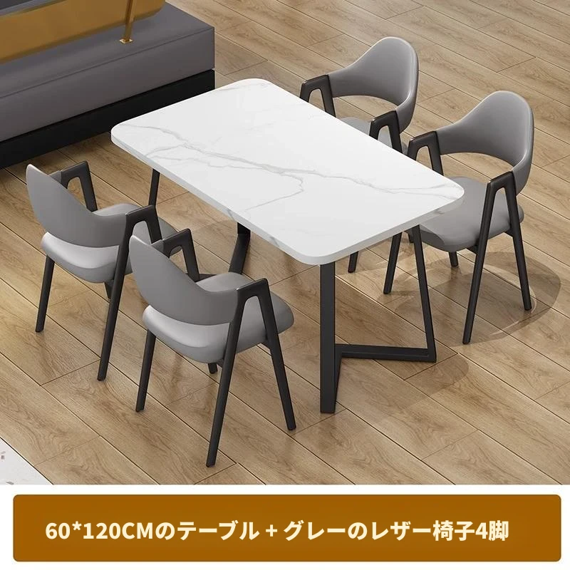 120x60グレー長テーブル+グレーナパ革4椅子 人気おすすめ