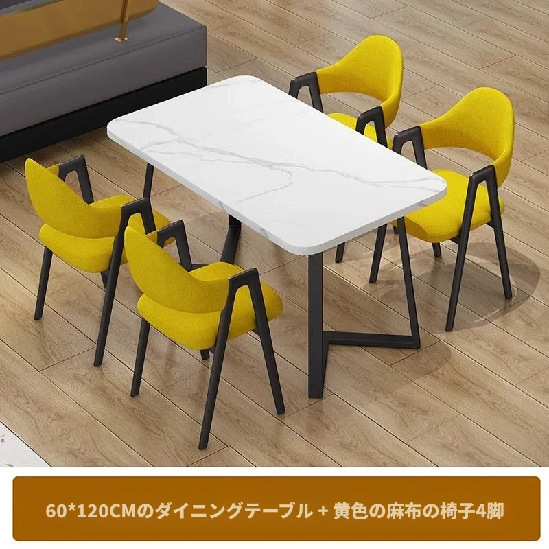 120x60ホワイト長テーブル+イエローマ麻布椅子x4