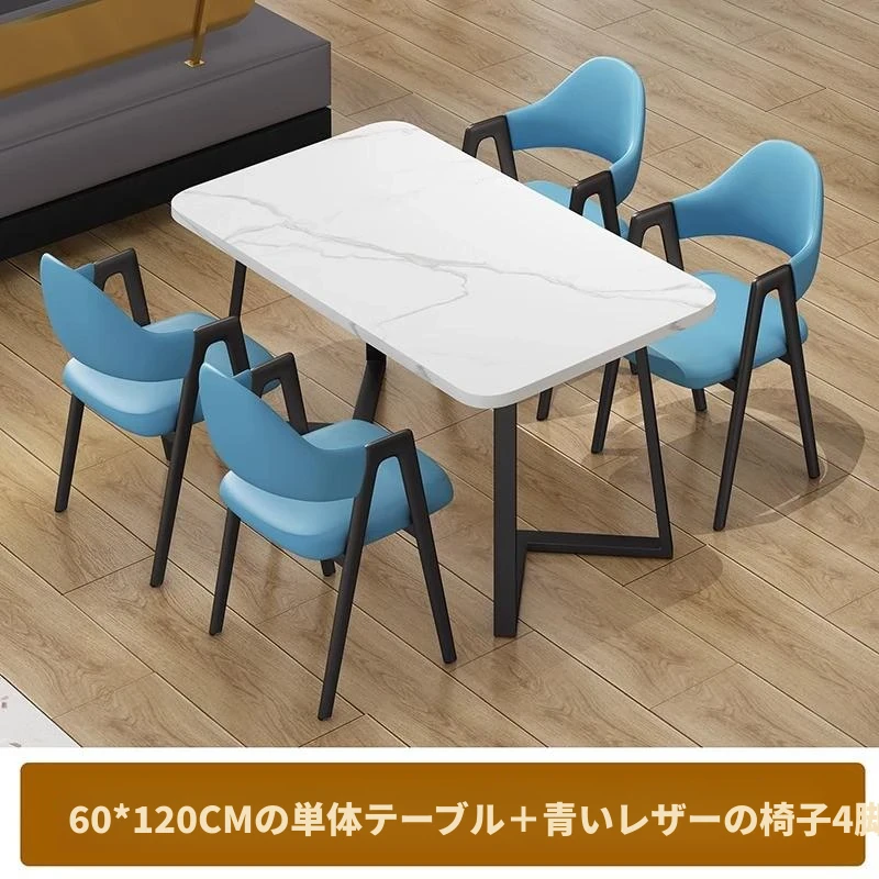 120x60ホワイト長テーブル+ブルーピーウィー椅子x4