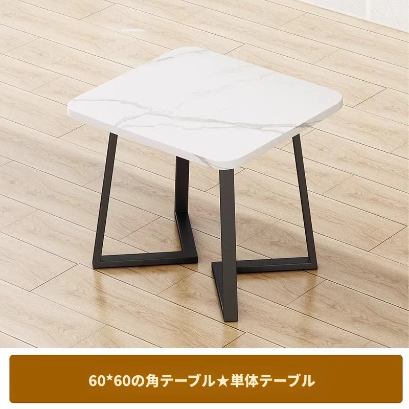 60x60角グレー大理石模様単テーブル★黒フレーム