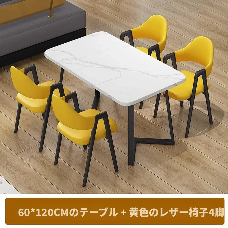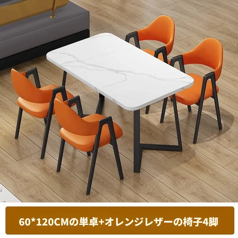 120x60ホワイト長テーブル+オレンジナパ革椅子x4