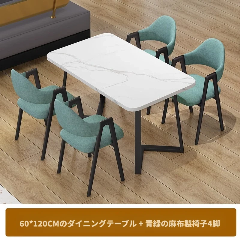120x60ホワイト長テーブル+青緑麻布椅子x4
