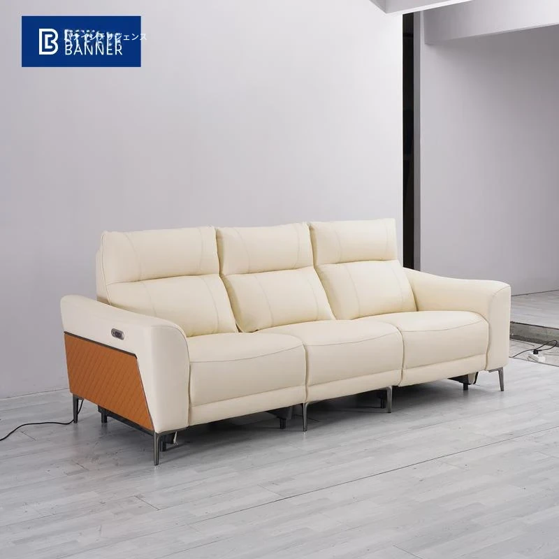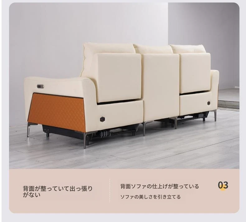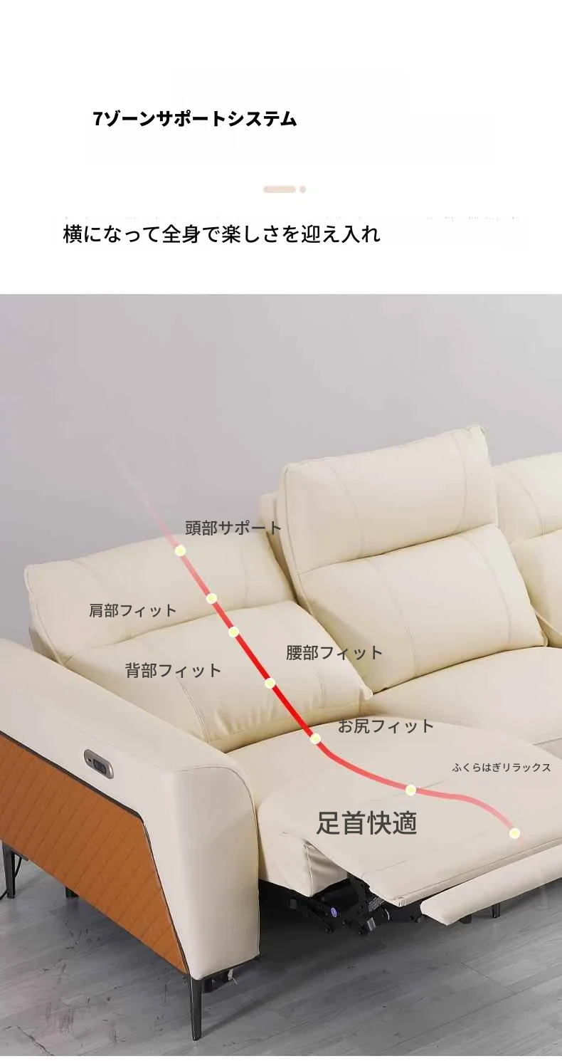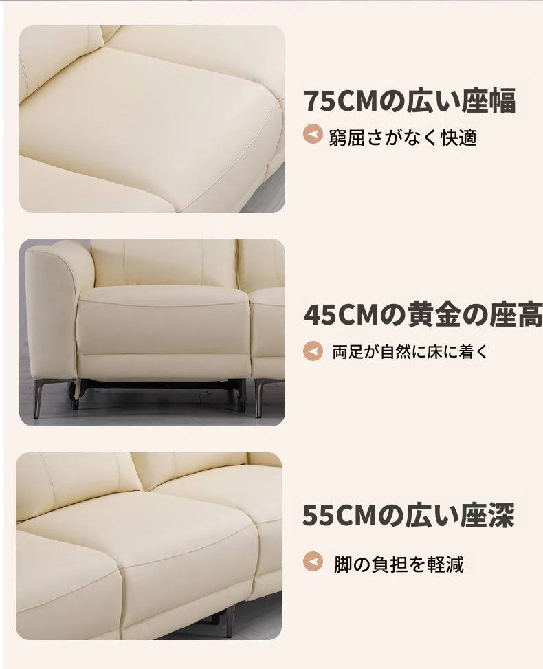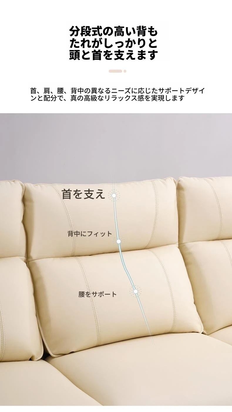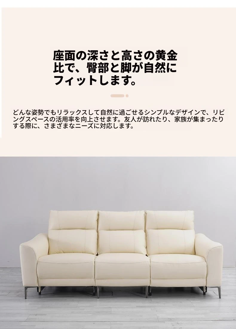 デザイナーズクリーム侘寂風リラックス本革ソファ – ミニマルな小型リビングにぴったりな3人掛けレザーソファ、スタイリッシュで居心地の良さを追求!