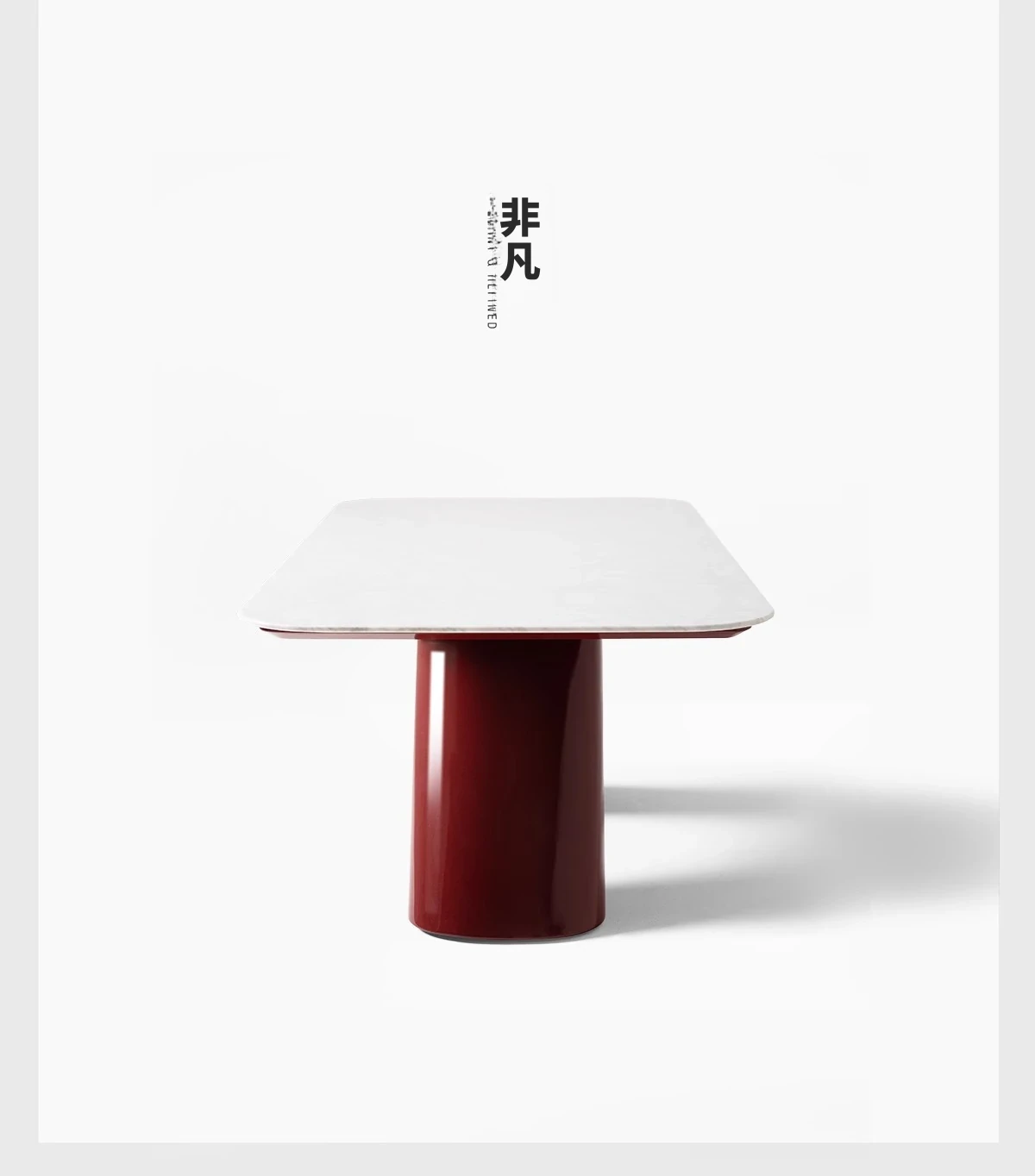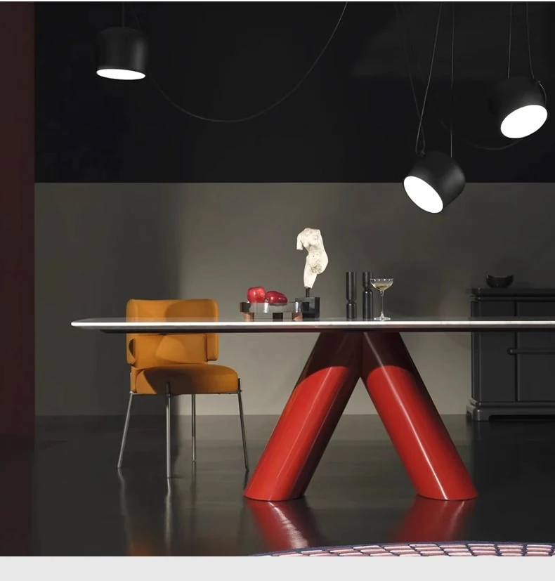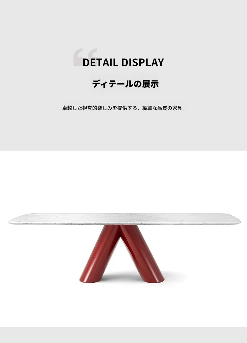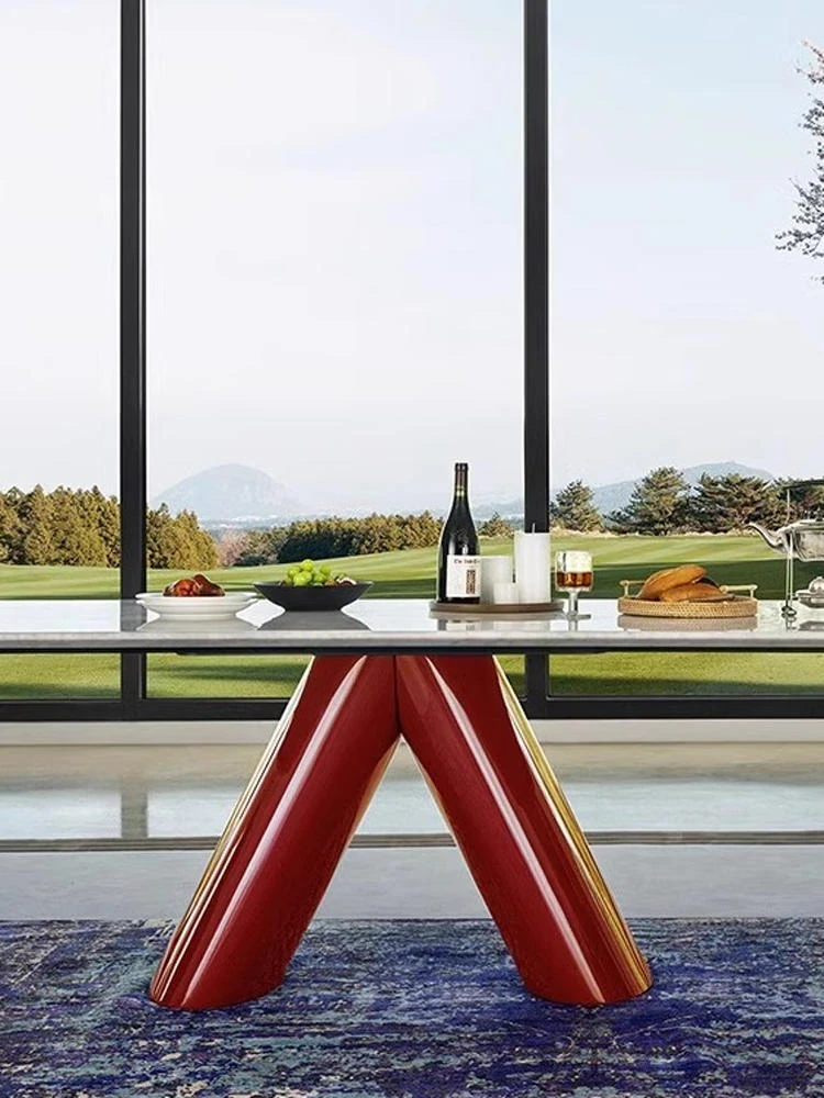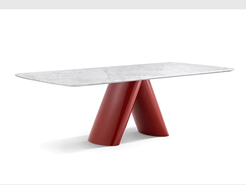デザイナーのイタリアンミニマルモダン天然大理石ダイニングテーブル - ブルガリレッドの高級ヴィラ用ダイニングテーブルで、洗練されたスタイルと贅沢な雰囲気を演出します。