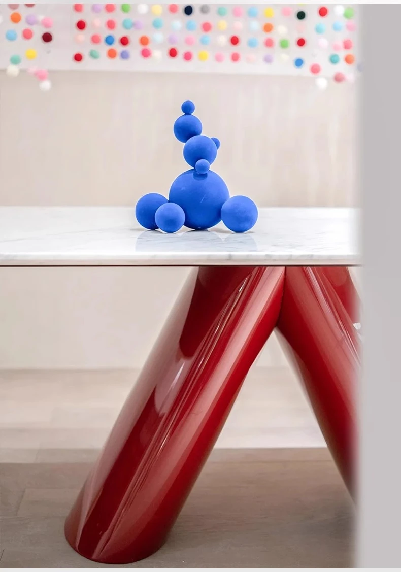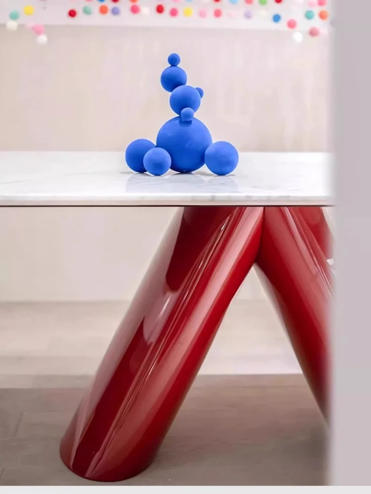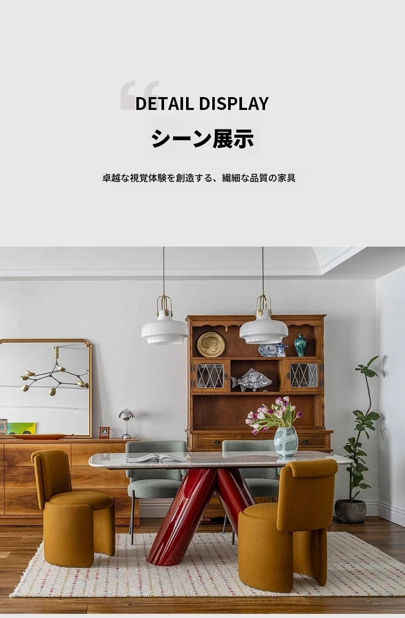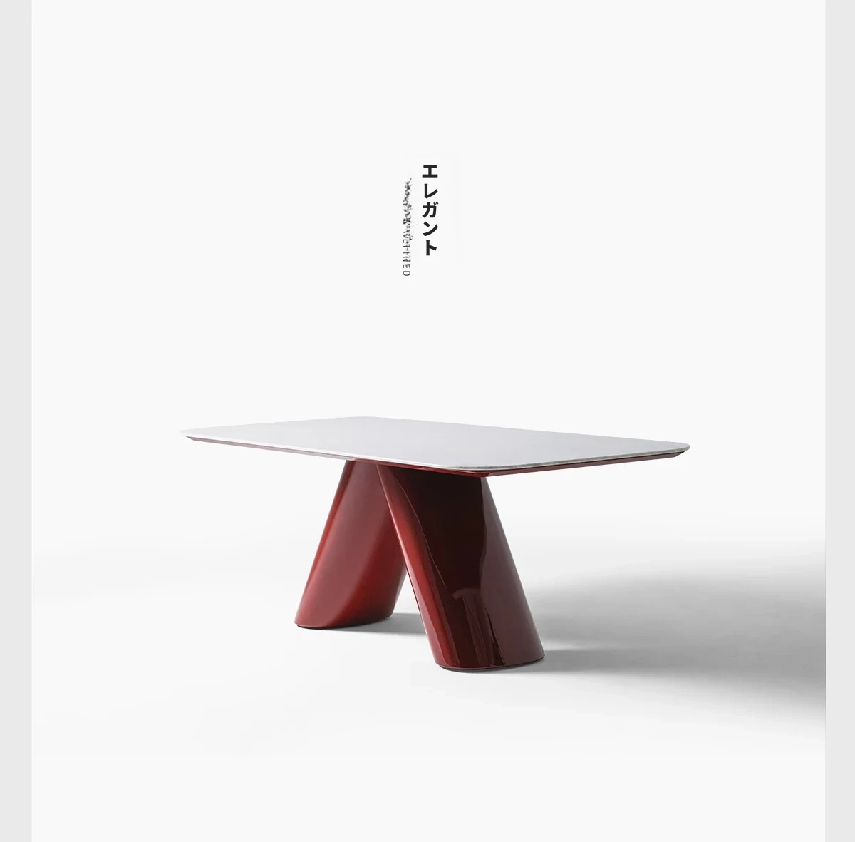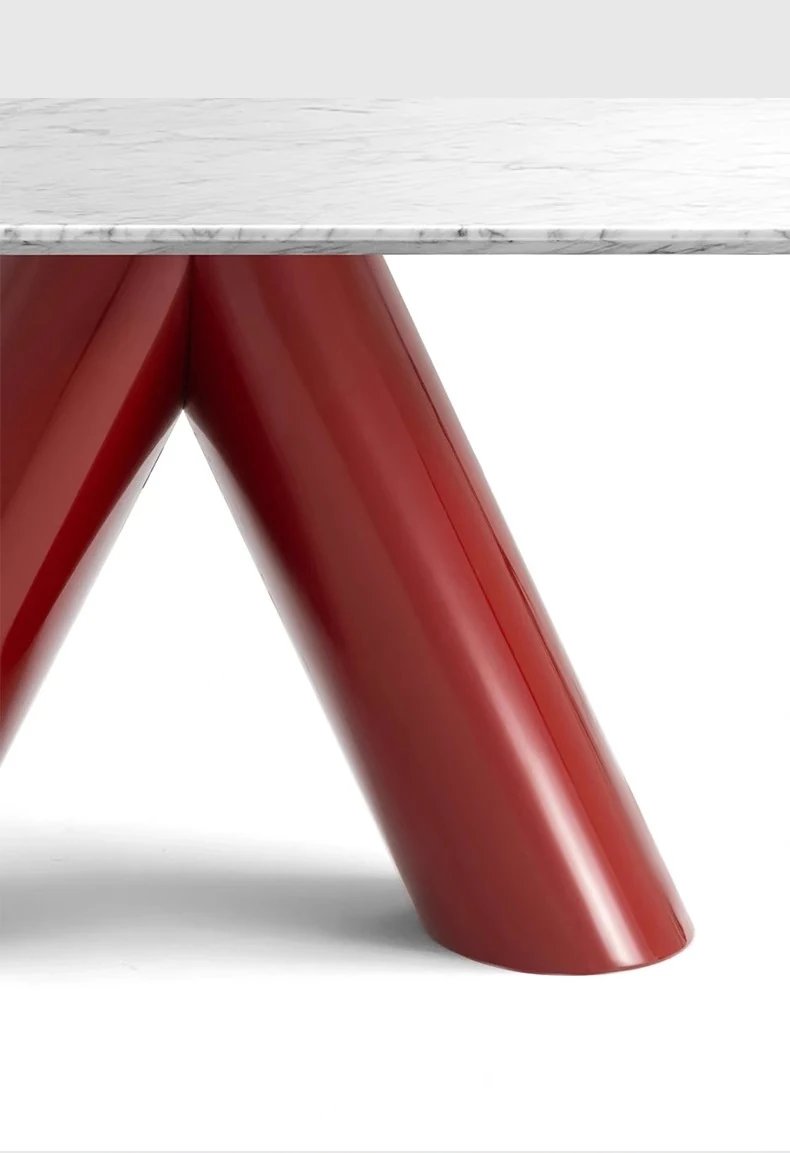 デザイナーのイタリアンミニマルモダン天然大理石ダイニングテーブル - ブルガリレッドの高級ヴィラ用ダイニングテーブルで、洗練されたスタイルと贅沢な雰囲気を演出します。