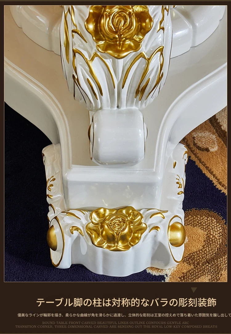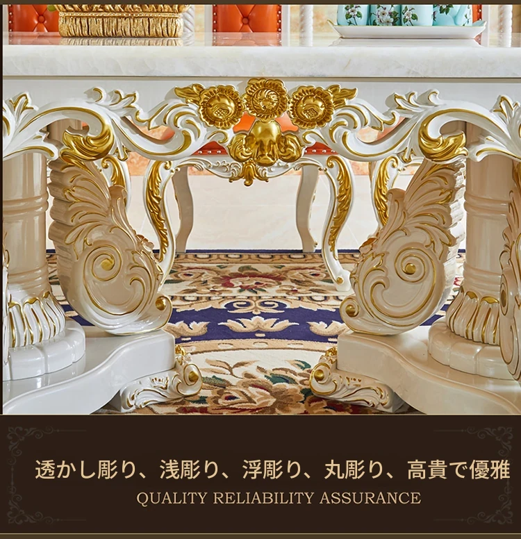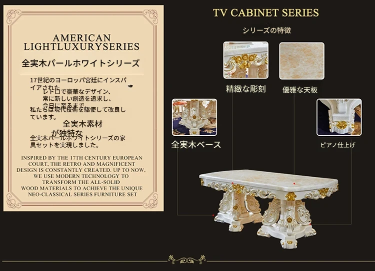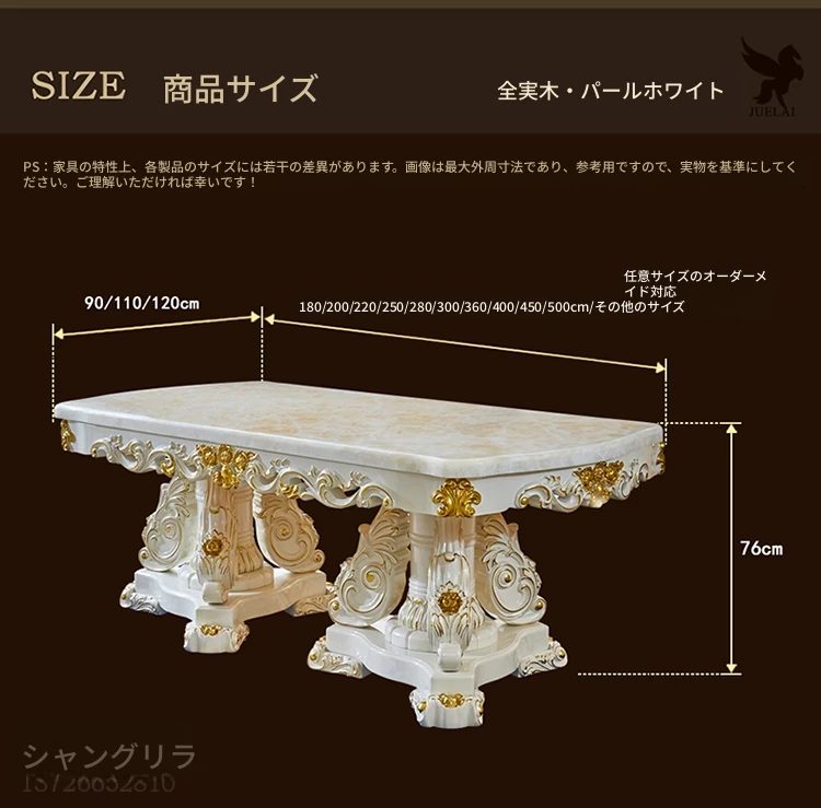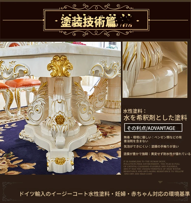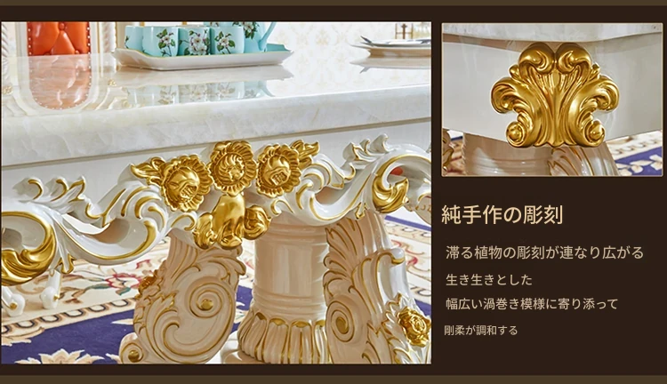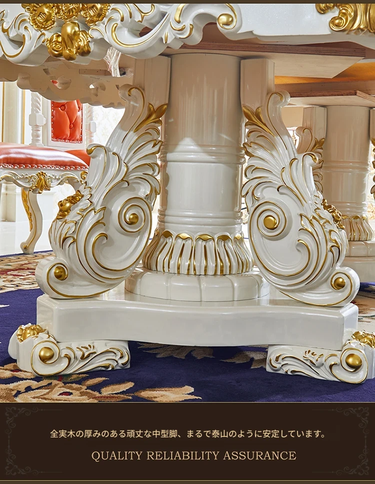 アメリカンスタイルの長方形ダイニングテーブル - ヴィラ用、全実木製、華麗な彫刻デザイン、欧州風高級感、ホテルやクラブに最適、エレガントなパールホワイト大理石の天板付き。