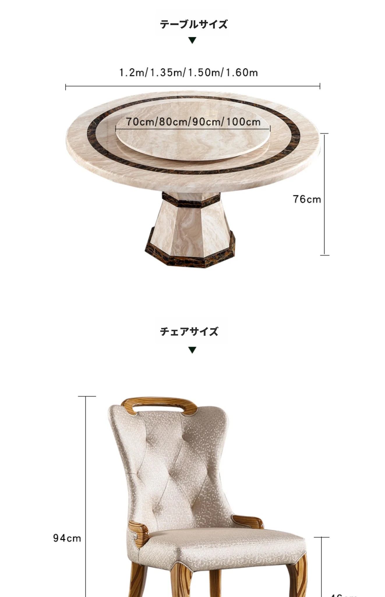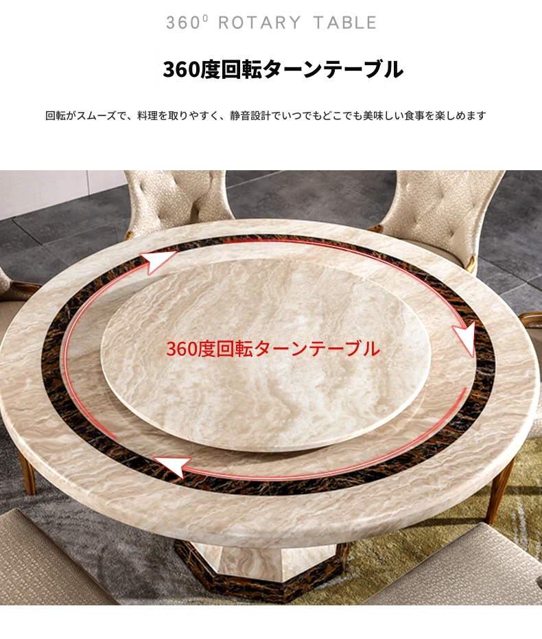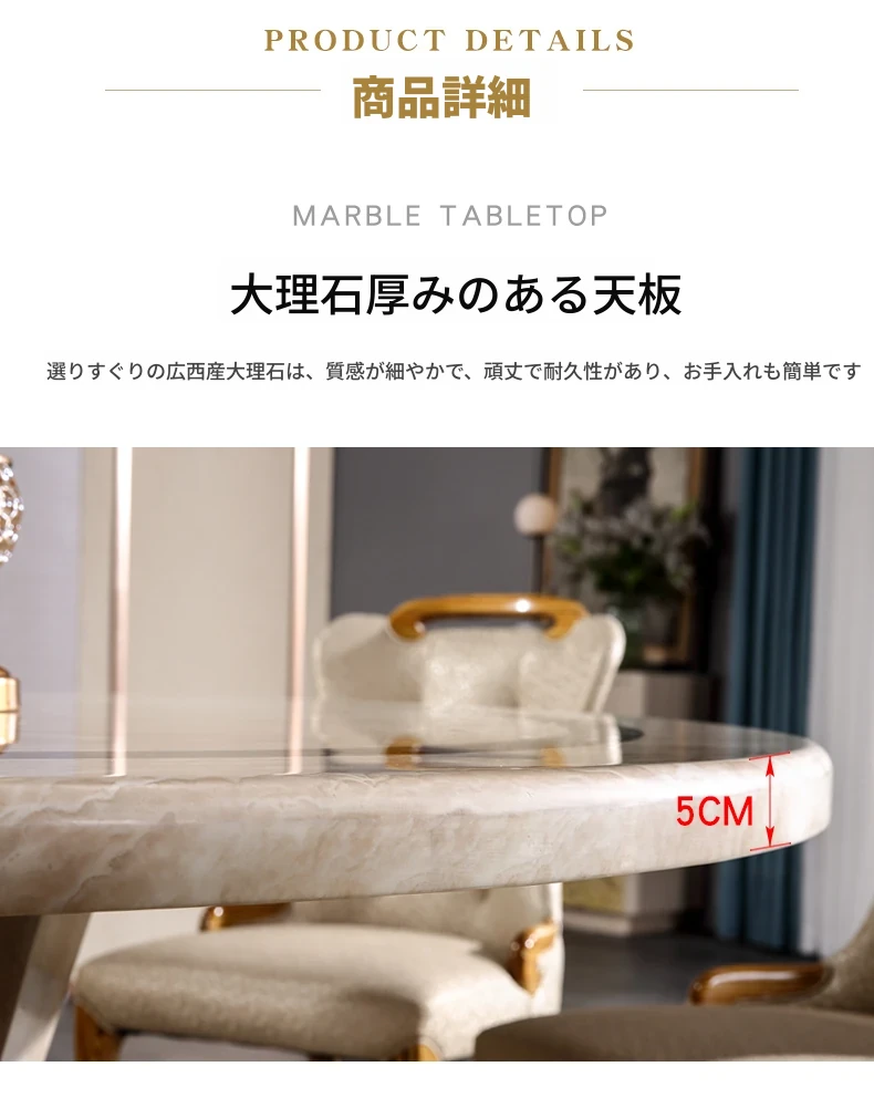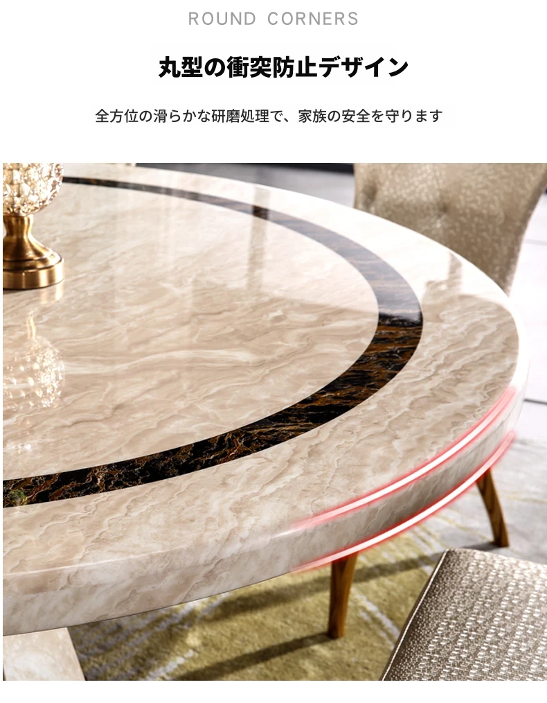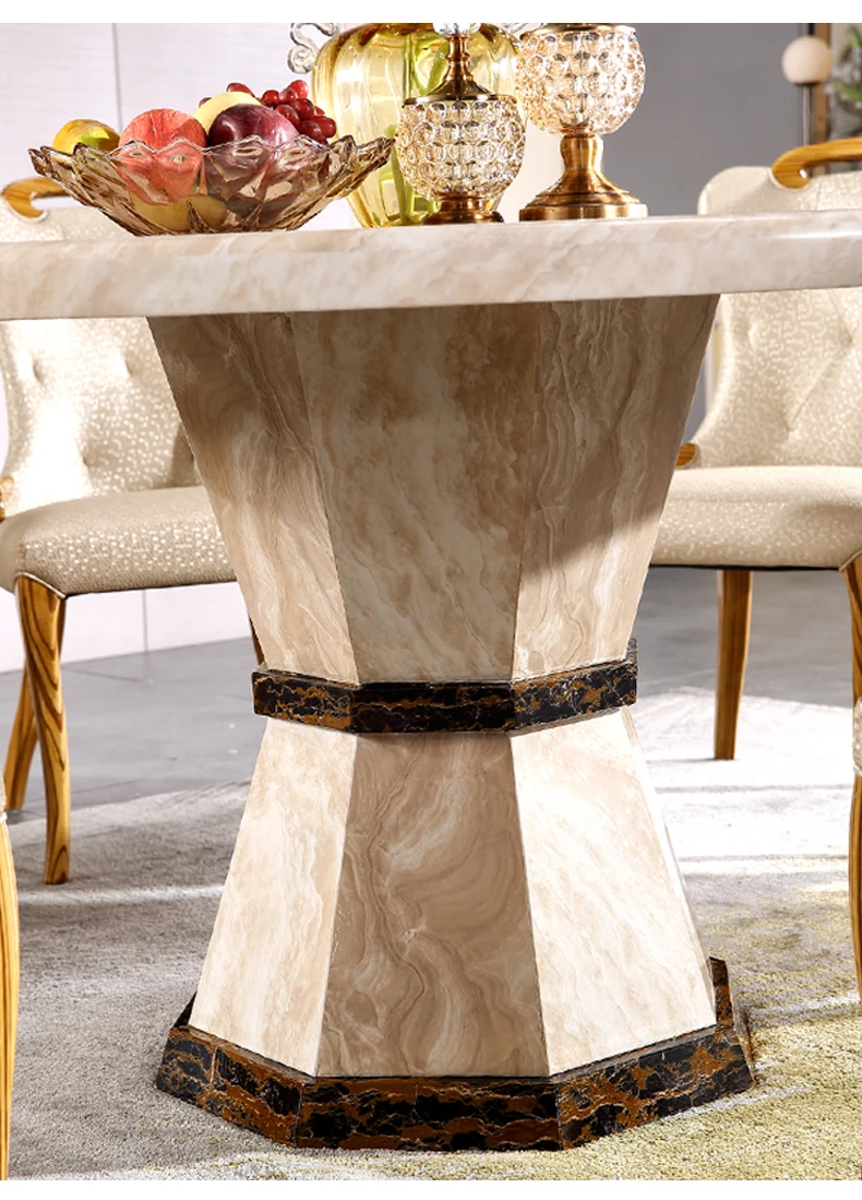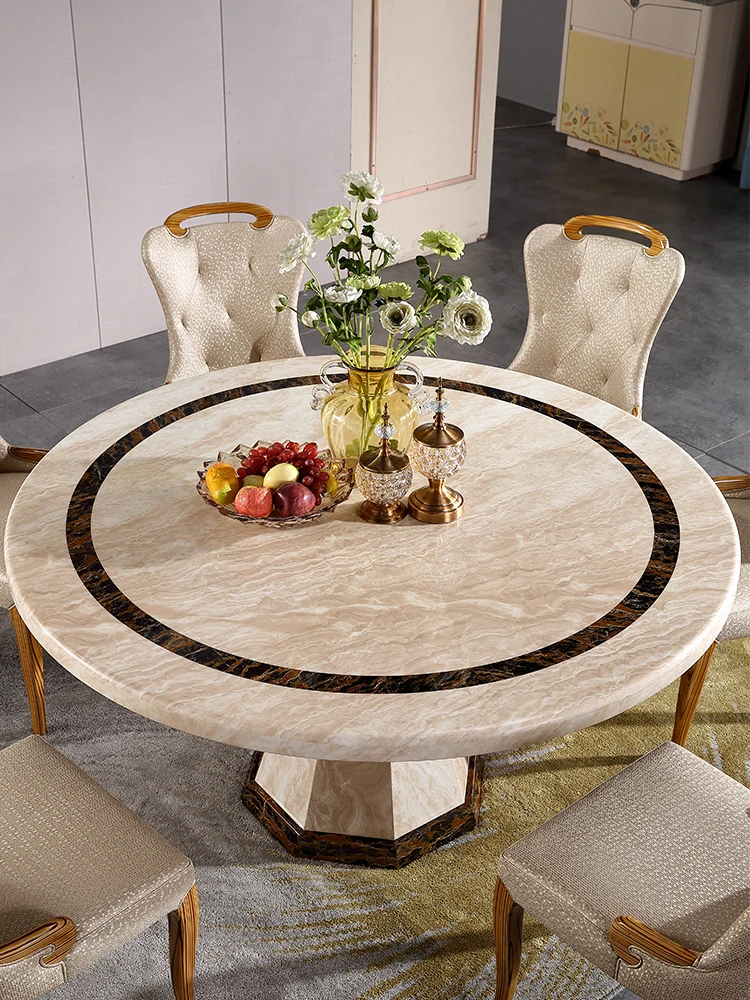 益尚坊の大理石製ダイニングテーブル&チェアセット - 高級ヴィラ向け、ミルクベージュ色の6〜10人用ホテル向けラウンドテーブル。優雅な欧風デザインで、特別なひとときを演出します。