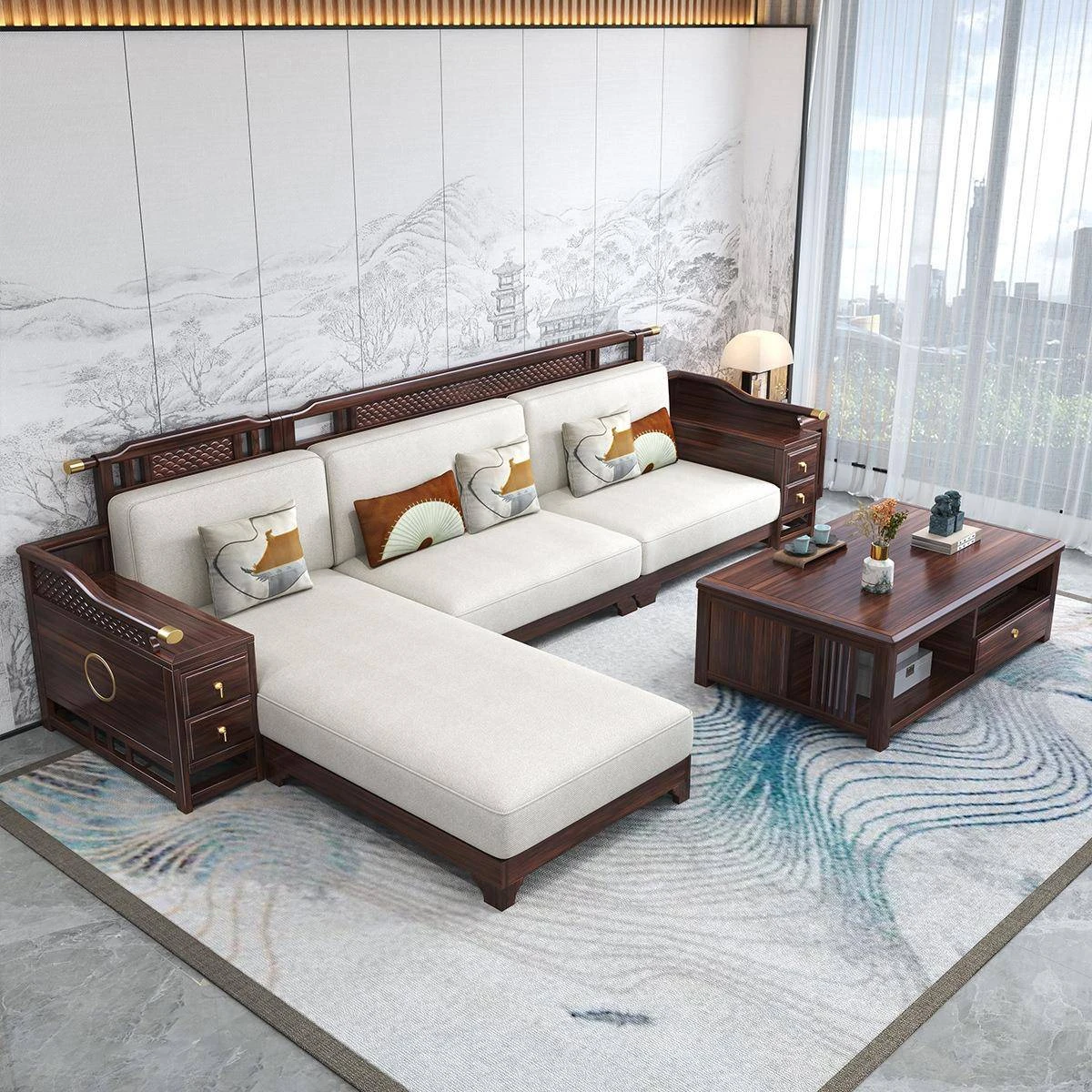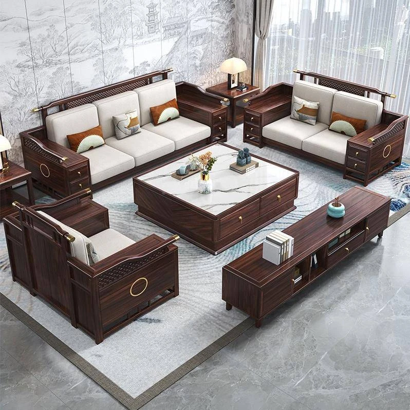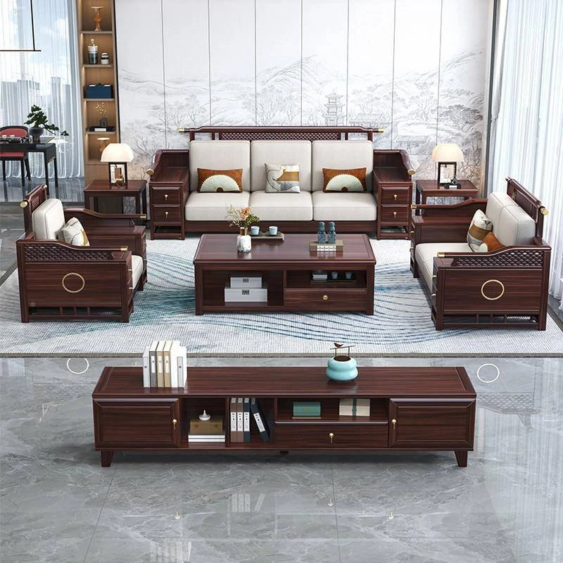 新中式スタイルの実木製ソファセット、軽やかで贅沢なデザインのウ0221。ラグジュアリーな空間を演出する、広々としたリビングにぴったりな大きめサイズのリラックスチェア。あなたの別荘や大邸宅に最適な選択!