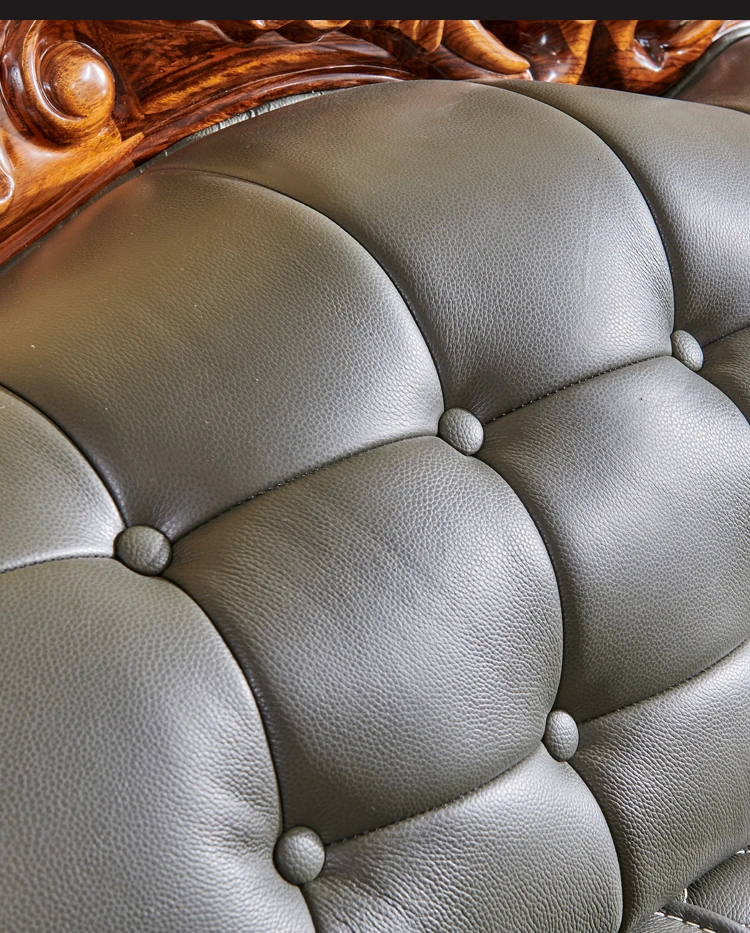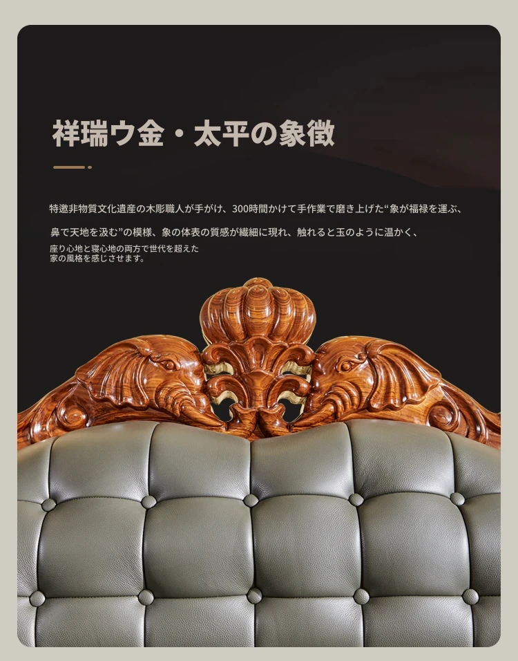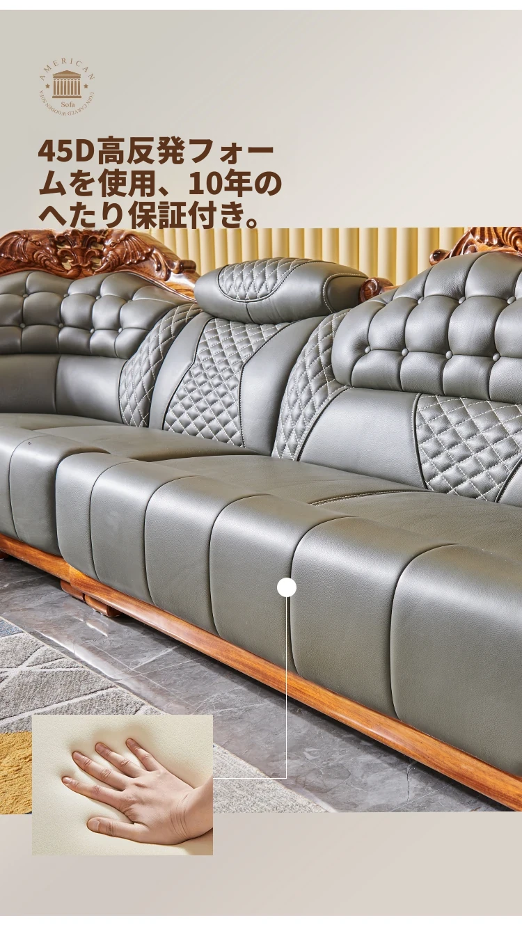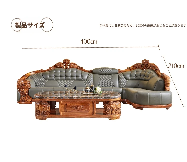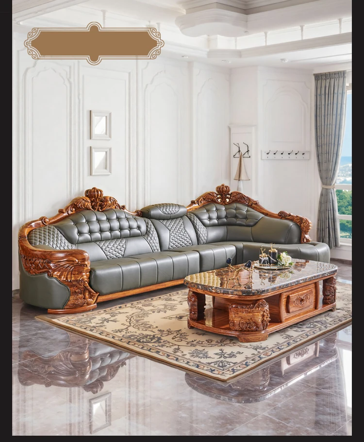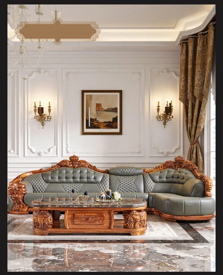 欧州風ウッドブラックレザーソファ 新中式大邸宅向けリビングルーム用 天然木製L字型コーナーソファセット - 高級感溢れるデザインで、ゆったりとした贅沢なひとときをお楽しみください!