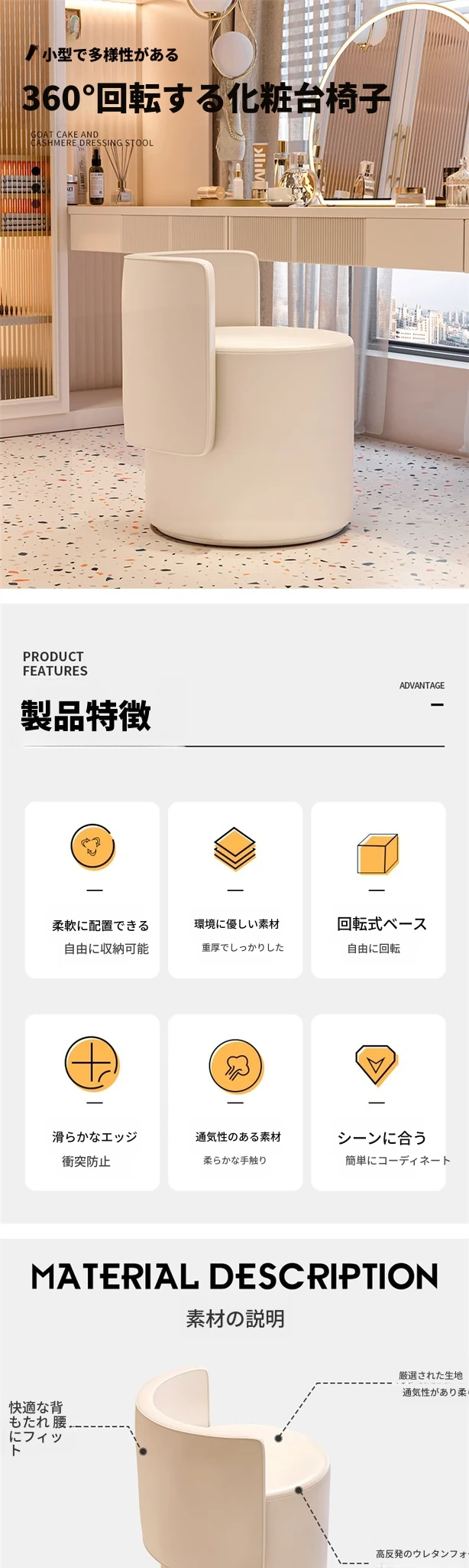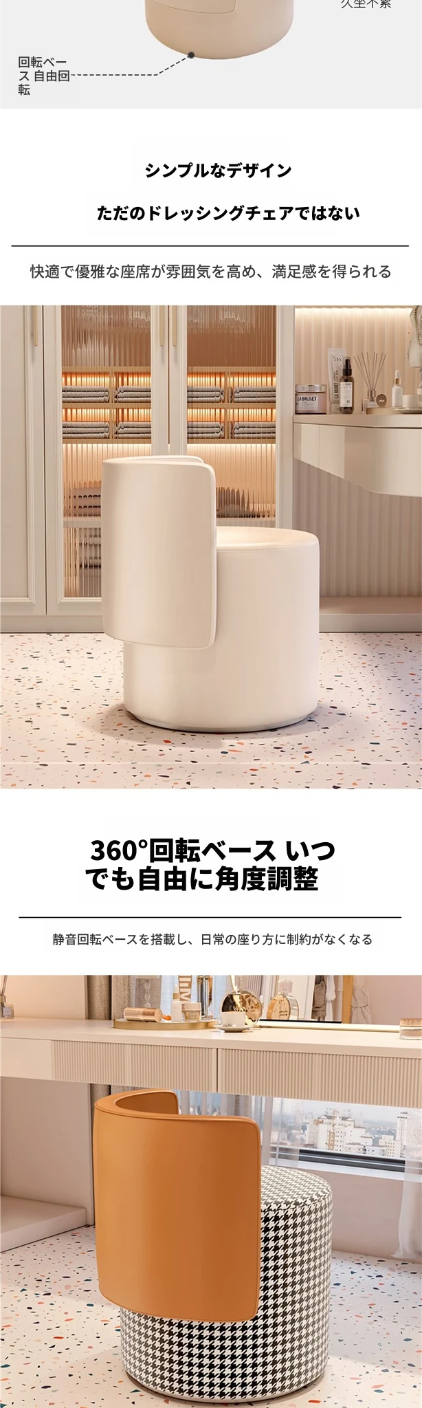 高級感溢れる寝室用ドレッシングスツール|女性にぴったりの背もたれ付きメイクチェア|おしゃれなインテリアで自宅でのビューティータイムを格上げ!快適な座り心地で、毎日のメイクを楽しく!