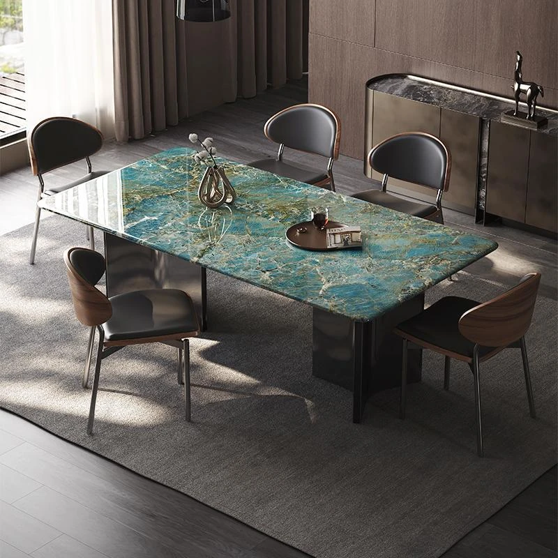 高級感あふれる大理石風の超クリスタルストーンダイニングテーブルセット!シンプルでモダンなデザインの長方形テーブルと椅子の組み合わせ。小さなスペースにもぴったりな、スタイリッシュな家用ダイニングセットです!