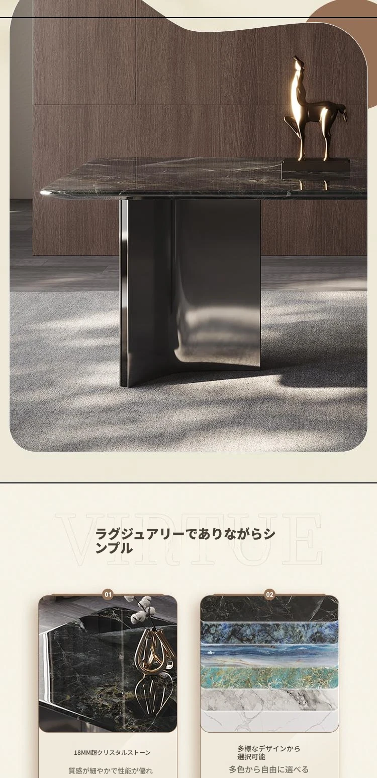 ラグジュアリー超クリスタルストーン18MM天板-ブラックチタンミラー枠【1テーブル10チェア-270#ダイニングチェア】