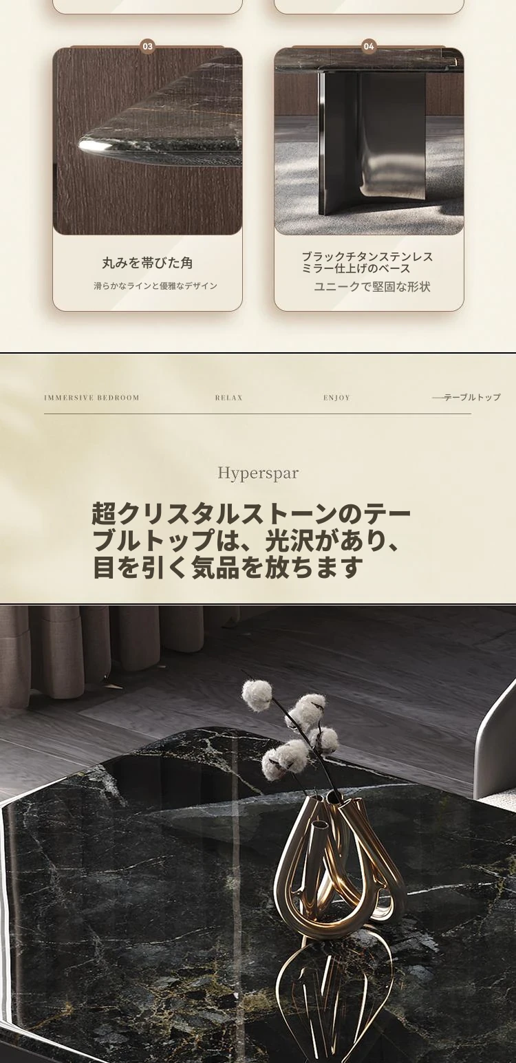 ラグジュアリー超クリスタルストーン18MM天板-ブラックチタンミラー枠【単テーブル】
