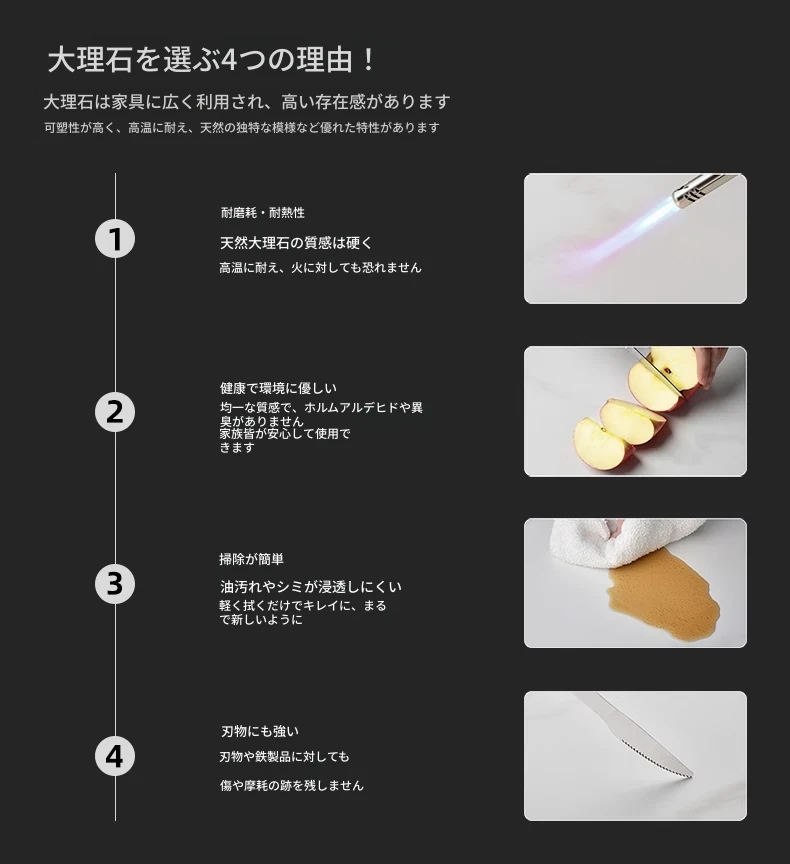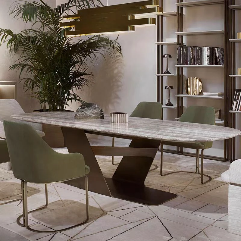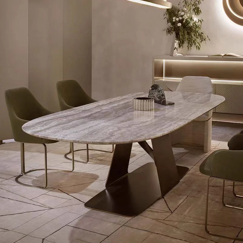 高級感あふれる大理石長方形ダイニングテーブル - 小さな家にもぴったり!デザイナーが手掛けたイタリア製で、スタイリッシュな食卓を演出します。あなたの食生活をグレードアップする一品!