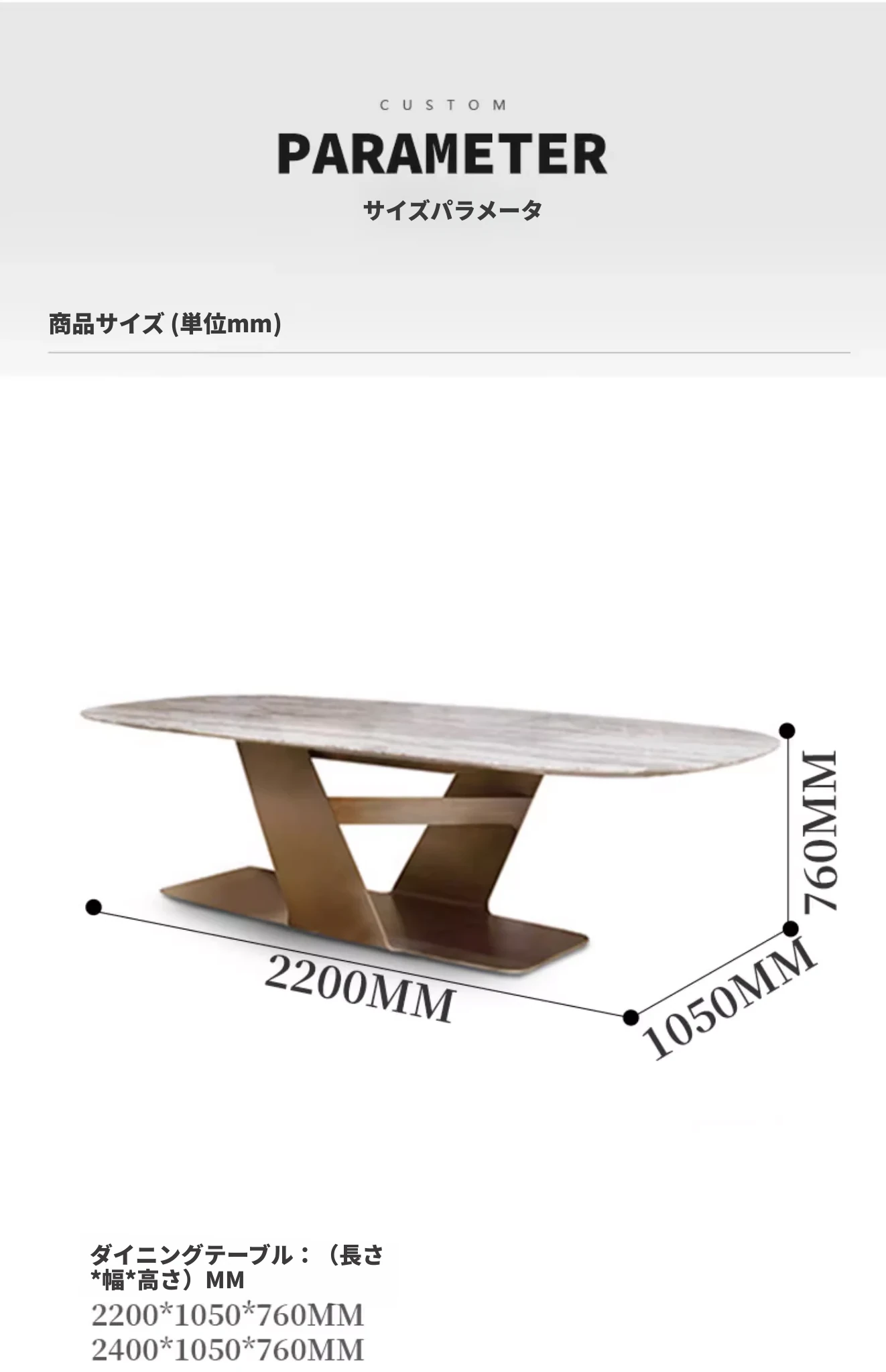2.2メートルのダイニングテーブル