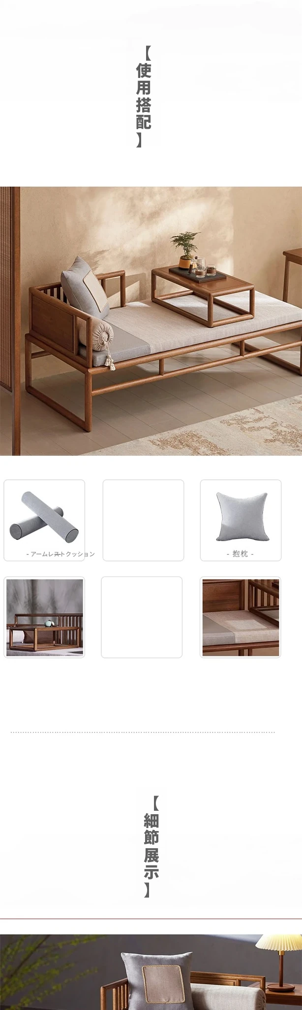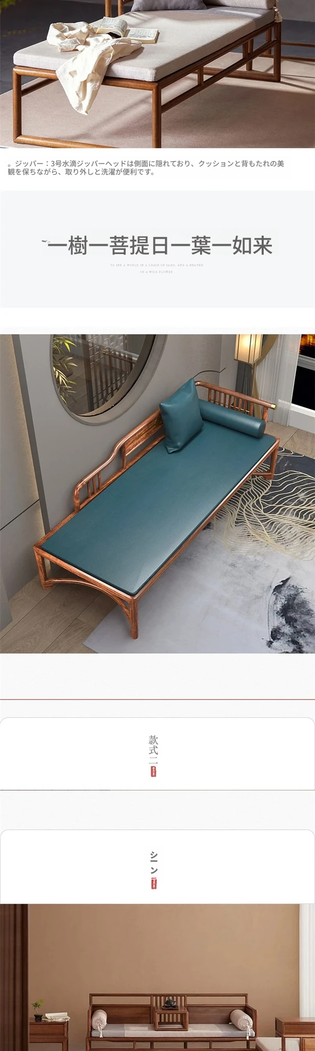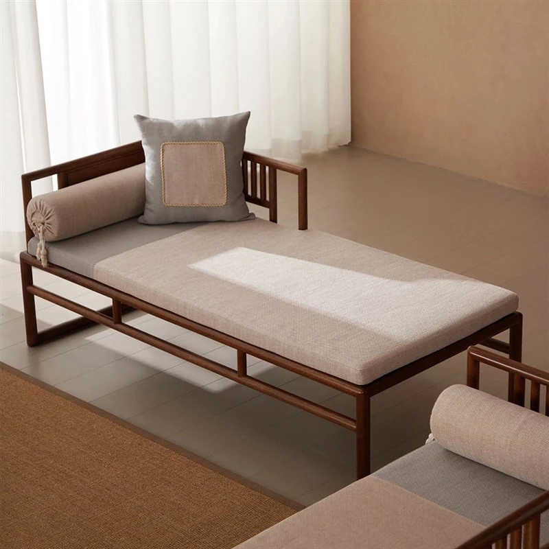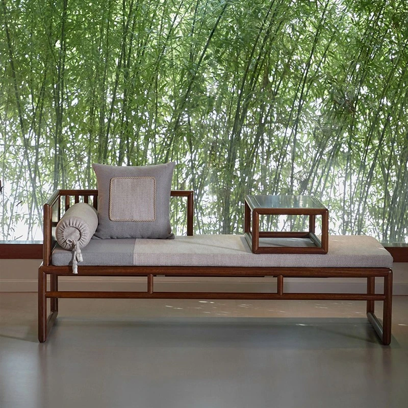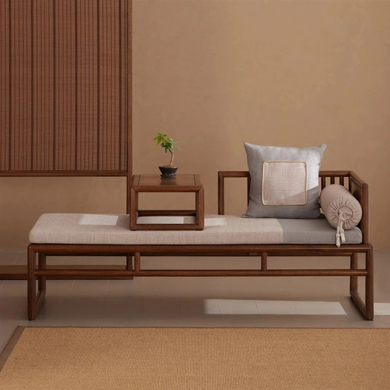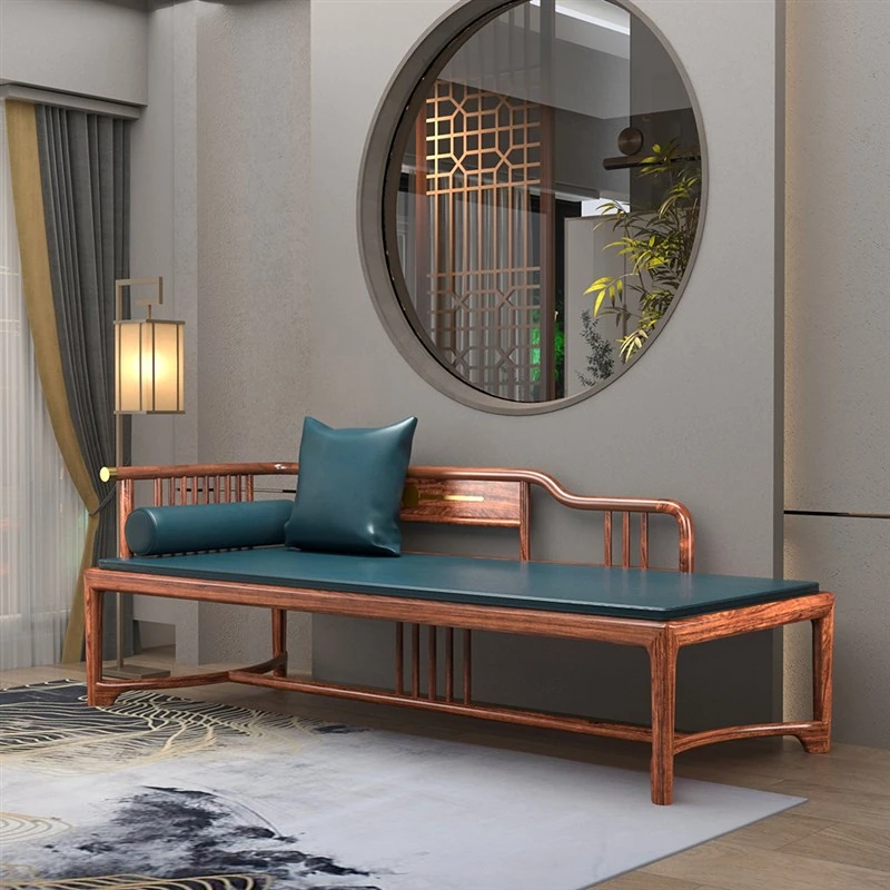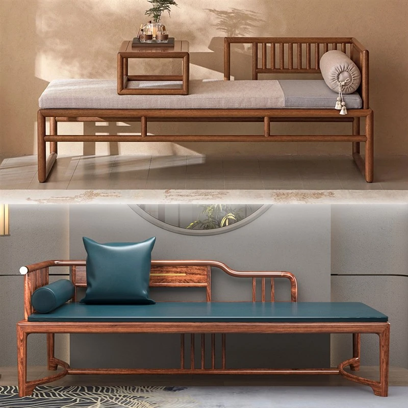 ウーキン木製新中式ベッドルーム用高級貴妃椅 - 美しいC型ソファ、個別の貴妃椅子、リラックスできる太妃椅子。上質な実木製で、贅沢なひとときを演出します。