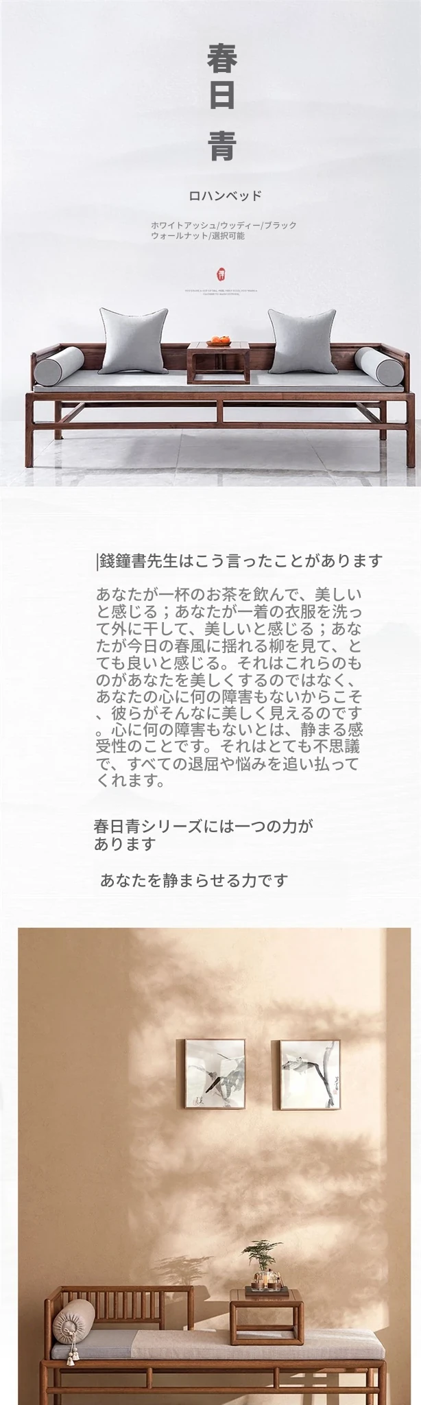 2メートルロハンベッド+1.8メートル貴妃椅子 ホワイトアッシュ
