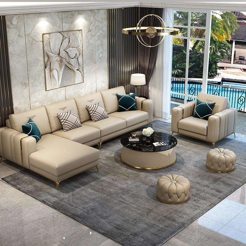 佛山の家具、軽奢後現代デザインの本革ソファ。デザイナーズヴィラ向けの港式スタイル、大小どちらのリビングにも最適なコーナーソファで、あなたのインテリアを一新します!
